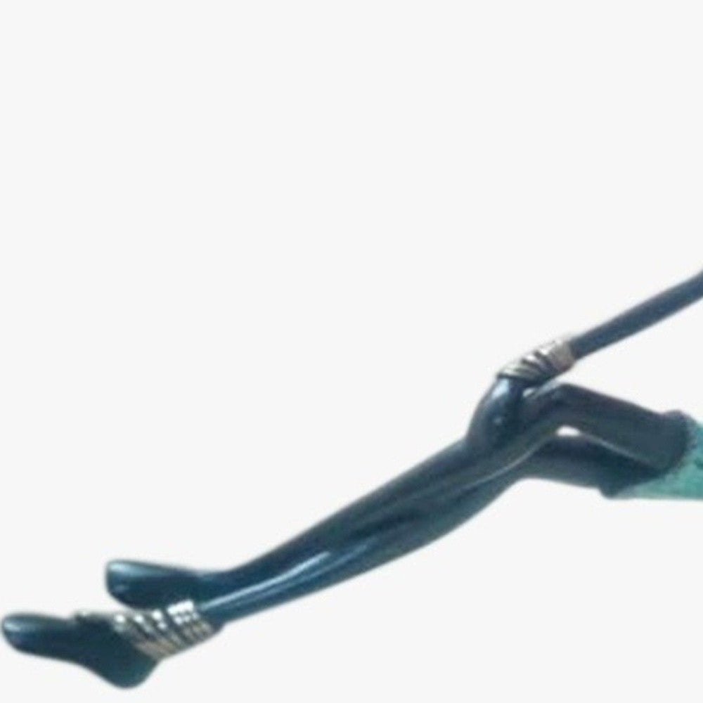 West African Vintage Hand Cast Bronze Female Figurine from Burkina Faso in Sky Blue Dress