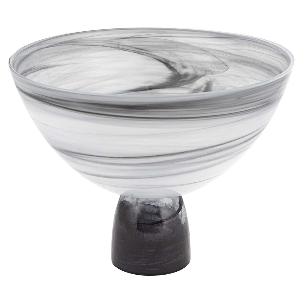 Elegant with a modern design sense, this 10" Black and Gray Swirl Mouth Blown Glass Footed Centerpiece Bowl is a great find. This European alabaster glass footed centerpiece will be a fabulous addition to your modern space. The handcrafted bowl is a piece of art unto itself, with an abstract swirling black pattern that mixes with the pale gray glass to create a unique statement for your home or as a gift. 7-inch H x 10-inch W x 10-inch D