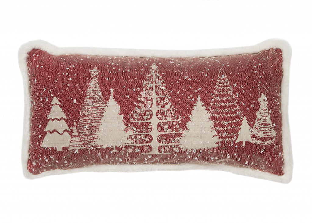 Set a festive Christmas mood with this cozy and comfy 10-inchx20-inch red and off white snow christmas polyester winter trees zippered pillow. This red and off white hued piece represents quality construction, expertly made from durable polyester that is not only long lasting but soft to the touch as well. Super soft and built to hold its shape, this polyfill pillow is a great option. For anyone that loves to decorate or accent their space with color and texture. Decorative pillows are a great way to change up the look and feel of your space easily and quickly. 10-inch H x 20-inch W x 4-inch D