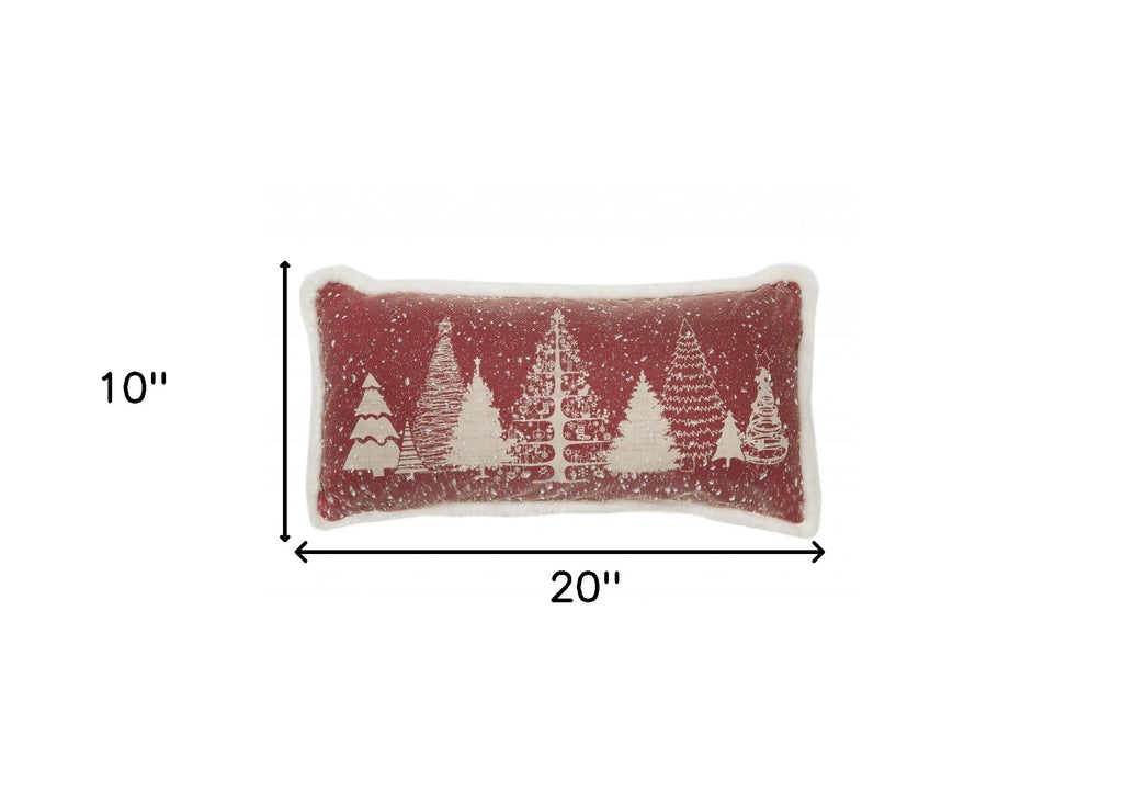 10"x20" Red and Off White Snow Christmas Polyester Winter Trees Zippered Pillow