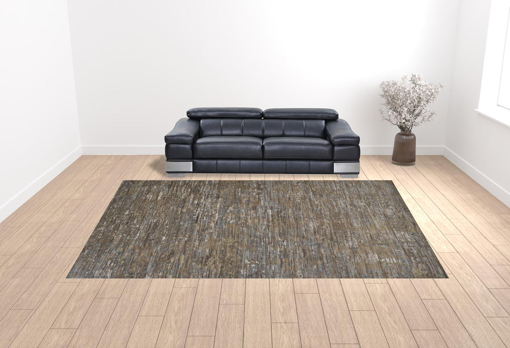 Add some artistry to your room with this 12' x 15' brown and gray wool abstract hand knotted area rug. This rectangle shaped rug features a abstract design in brown and gray to give it visual interest. A classic shape marries with good looking design for your space Crafted by skilled artisans, this hand knotted rug is genuine and unique. No two will be exactly alike. Place this area rug against a hardwood or tile floor and it will enliven your living space with style and sophistication. 0.39" H x 138" W x 180" D