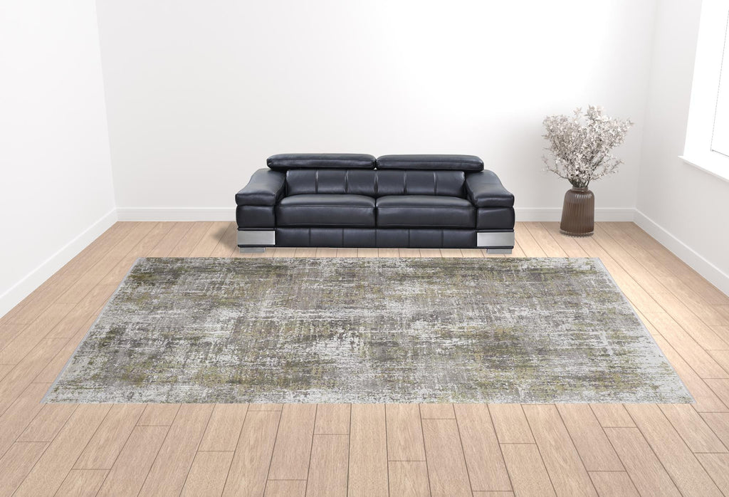 12' X 18' Green Gray And Ivory Abstract Power Loom Distressed Area Rug