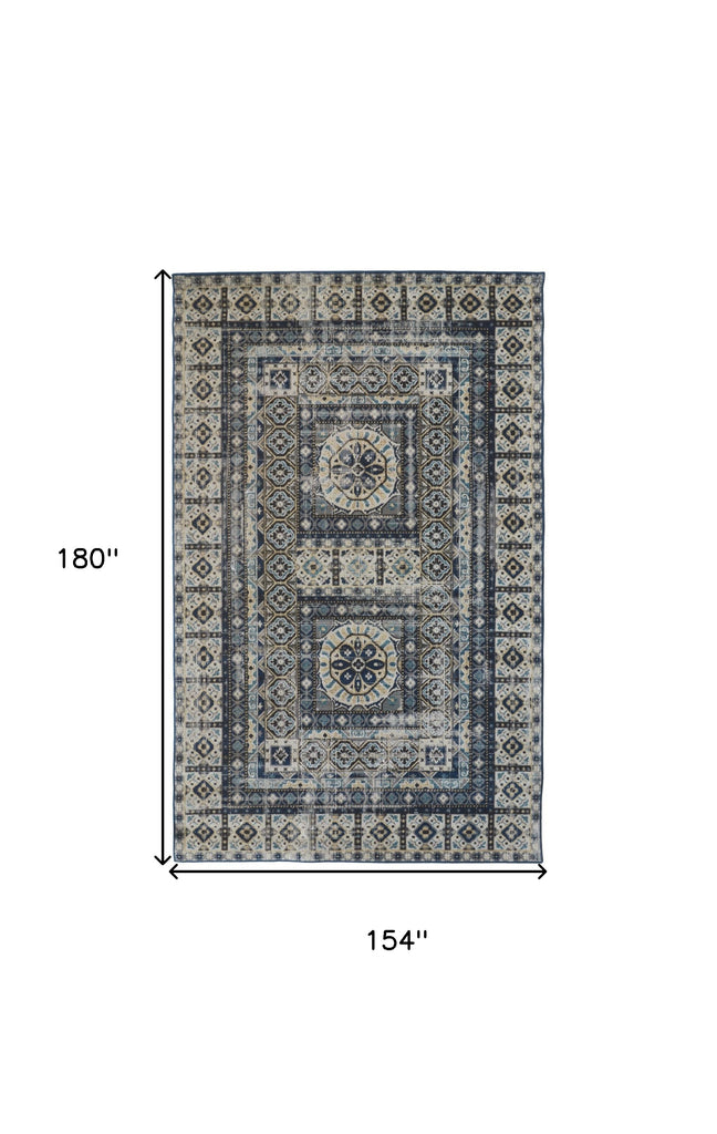 Set an inviting tone in your space with this 13' x 15' abstract power loom distressed area rug. This superior Turkish rug represents the highest quality and is built to last. Ideal for spaces with kids and pets, this rug is stain resistant to help repel stains and spilled liquids. Area Rugs help to give warmth and sense of home to your space. 0.14" H x 154" W x 180" D
