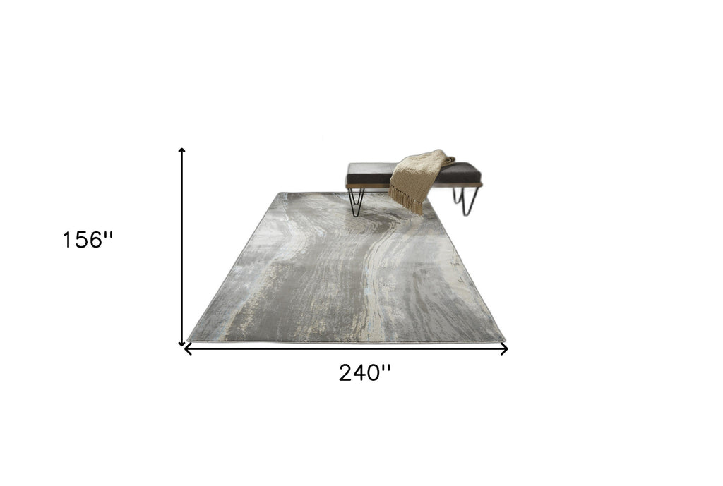 13' X 20' Gray Ivory And Blue Abstract Area Rug