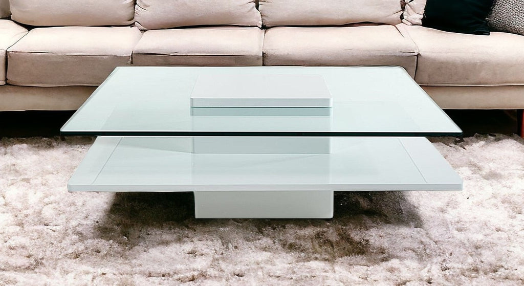 Captivate your friends and guests with this enchanting coffee table, while improving both the look and feel of your room as well. It has a lovely design that will certainly give a touch of innovation to your interior and radiate luxury. Not to mention how obviously well-made it is. This marvelous coffee table is made from high grade white MDF and glass. Moreover, its tremendously versatile as well. You can fit it into any room of your home. Its fantastic for making the place livelier. Its also highly practical besides just standing out with its looks. As for measurements, they are 14 for height, 39 for width, and 39 for depth, and it weighs 119.1 pounds. This long lasting and sturdy coffee table will definitely turn the heads of your guests.