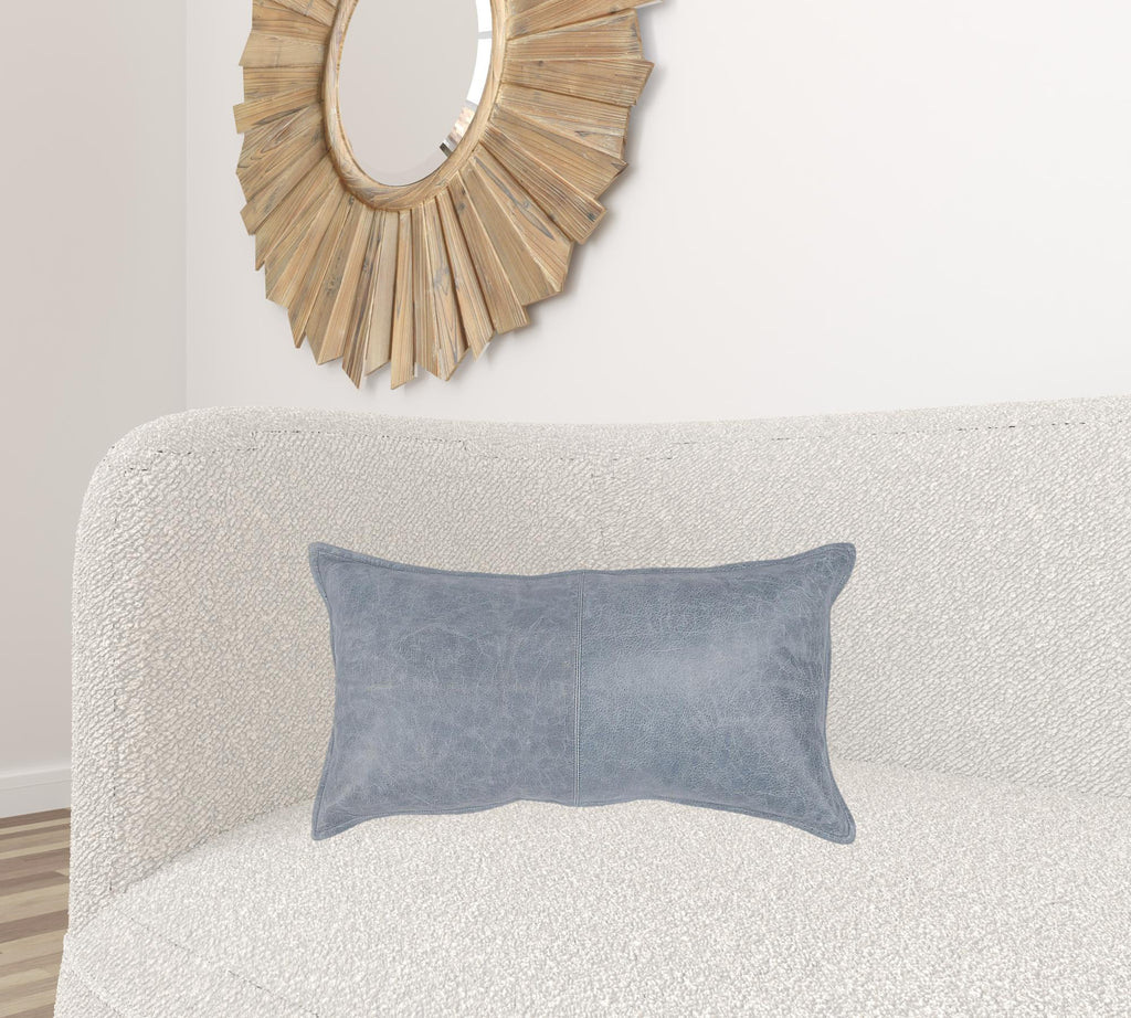 The perfect complement to your sofa, favorite chair, or bed, this 14" x 26" blue leather zippered pillow is a great decorative accent. This blue hued piece represents the highest quality construction, expertly made from premium and genuine leather. Elegantly chic, this pillow is the epitome of luxury. Great to use on its own or mix with other decorations for the perfect look. Decorative pillows are a great way to change up the look and feel of your space easily and quickly. 14" H x 26" W x 5" D