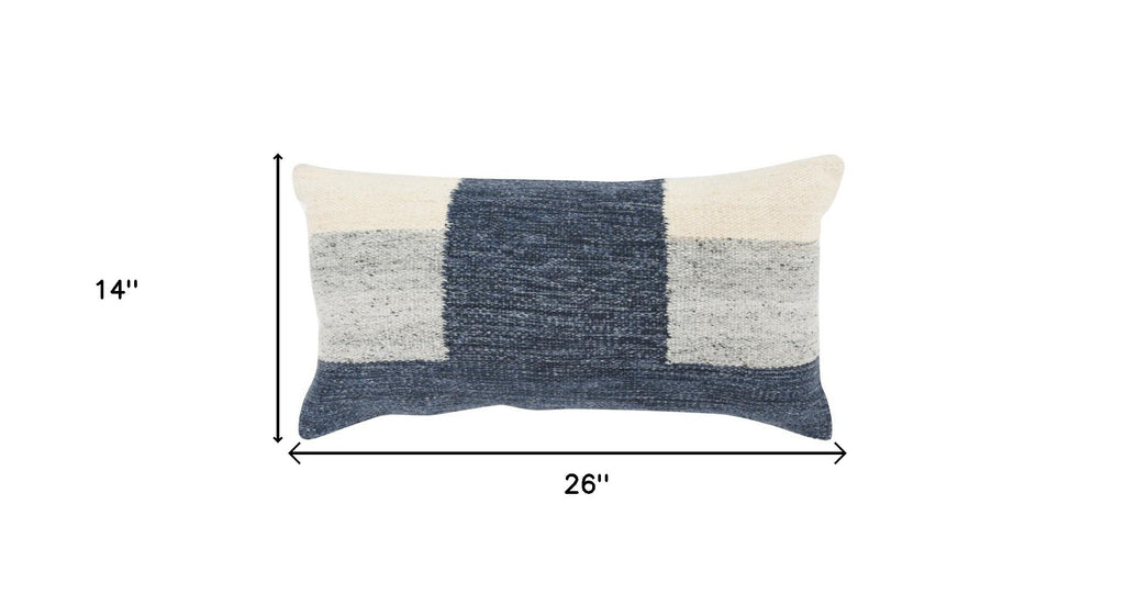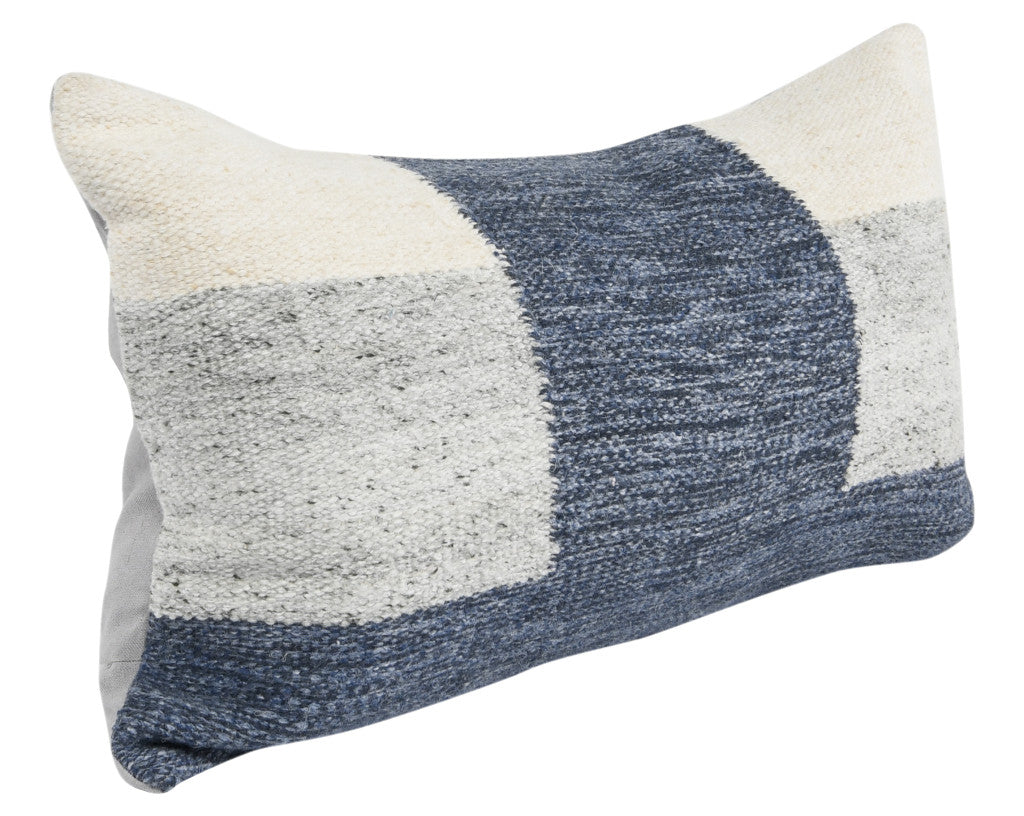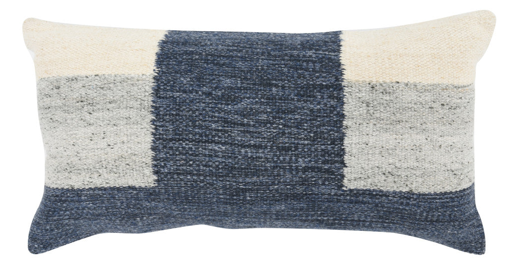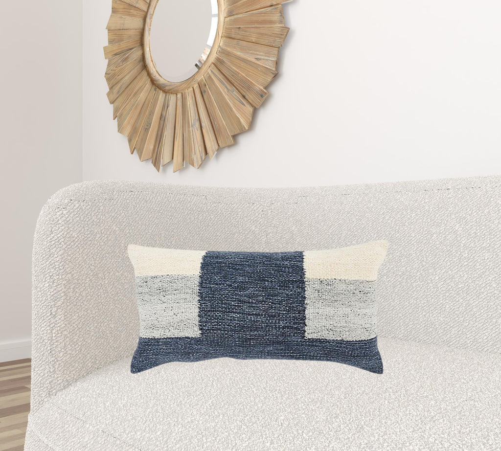 14" X 26" Blue Viscose, Polyester Geometric Zippered Pillow