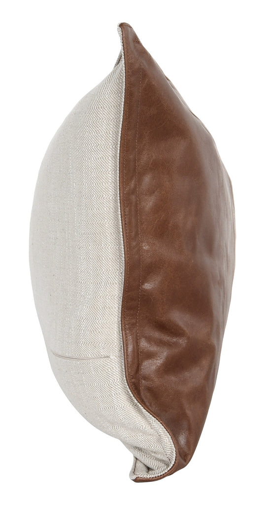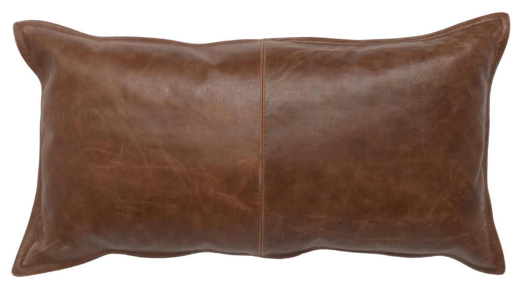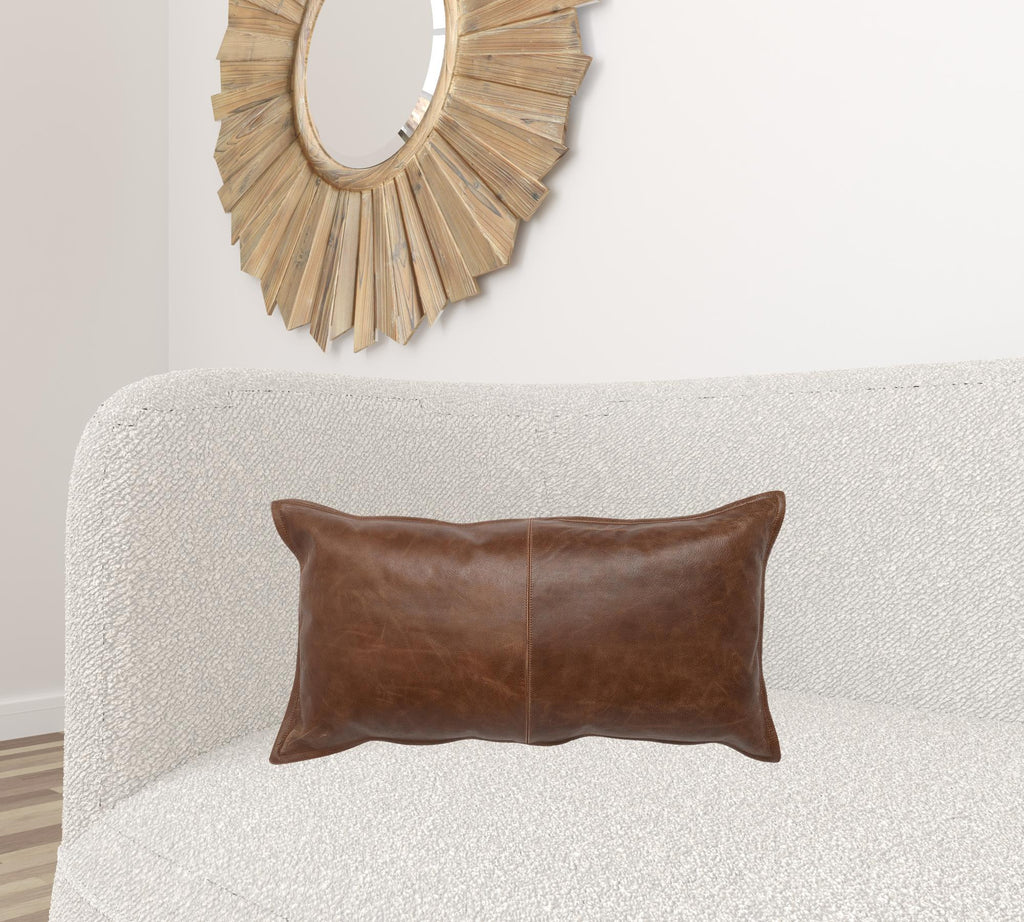 14" X 26" Brown Leather Zippered Pillow