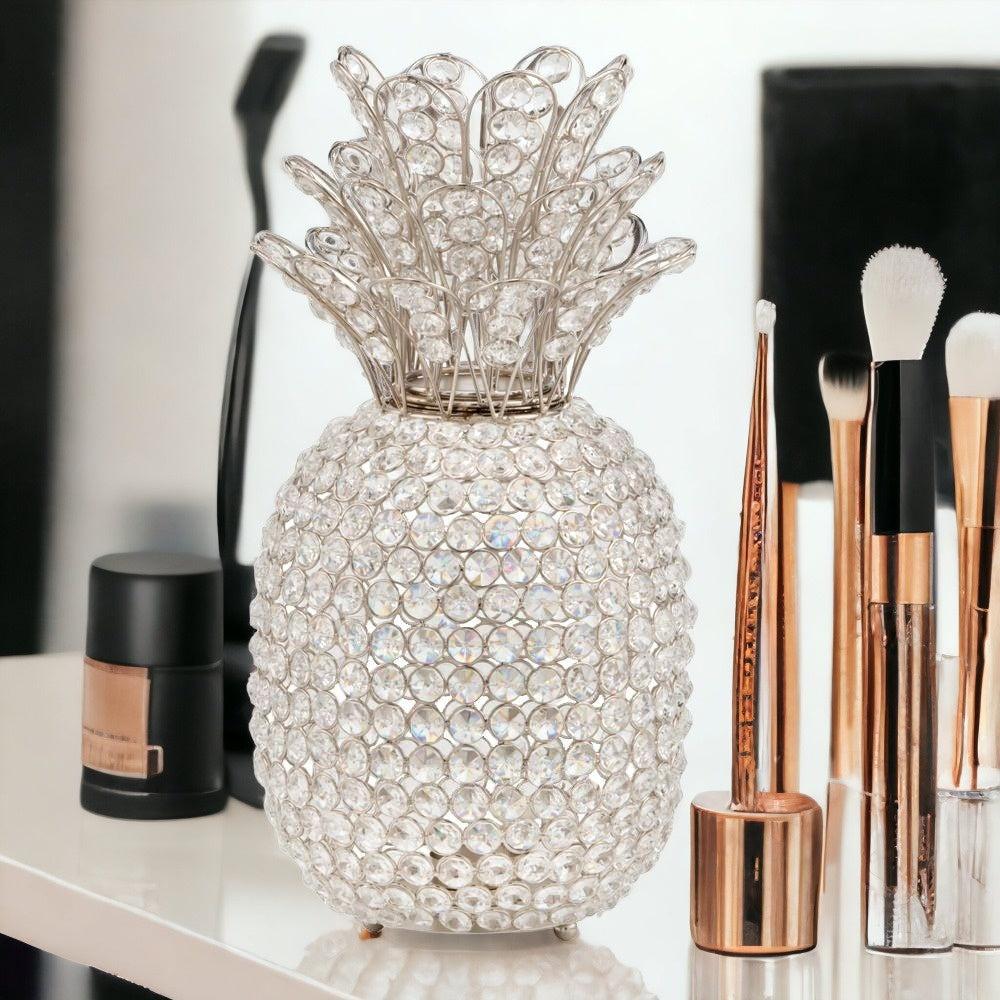 Add an air of fashion to your room and rejuvenate the space with this 15-inch silver faux crystal decorative pineapple. This silver hued piece represents high quality, expertly made from high grade faux crystal. Great to use on its own or mix with other decorations for the perfect look. 15-inch H x 8-inch W x 8-inch D