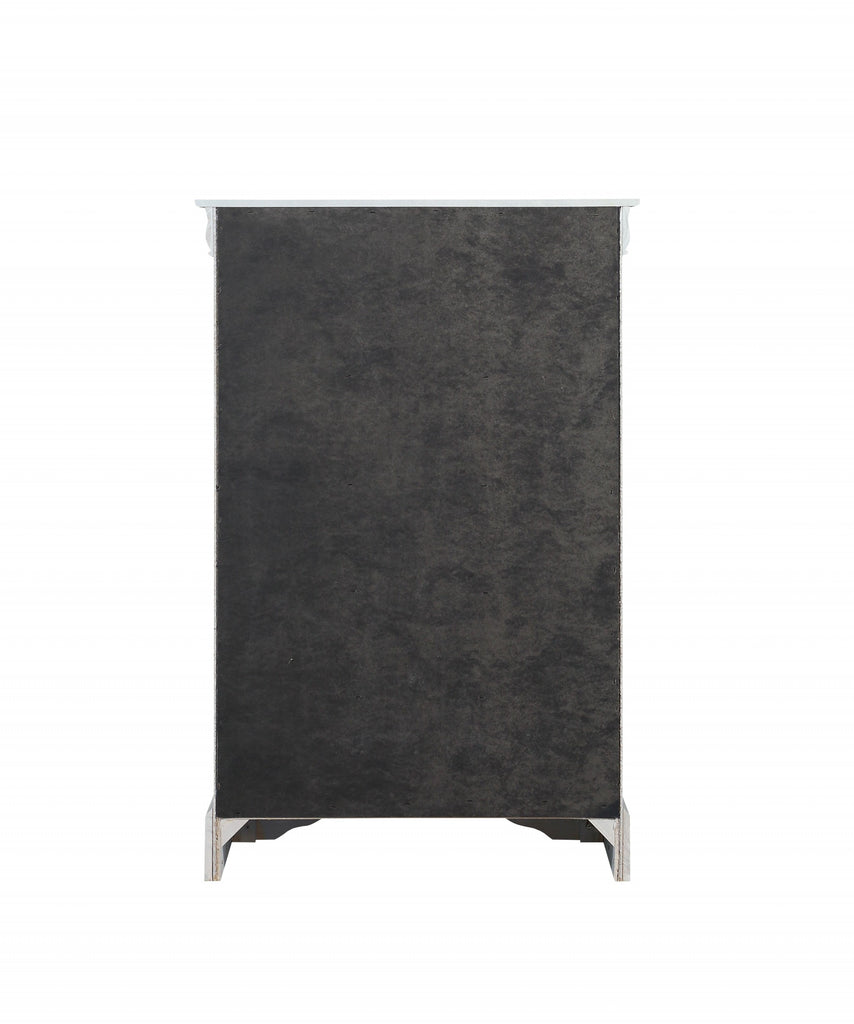 Enhance your room into a visually delightful and highly functional space with this 15" white solid wood five drawer lingerie chest. This chest of drawers is tall and lean making it an ideal choice for smaller rooms or as an additional storage option in larger rooms. Equipped with five easy open drawers for practical and good looking clothing storage. This dresser is built to last from high quality solid wood, The white coloration of this piece is neutral and will blend easily with most any decor. 47" H x 15" W x 31" D