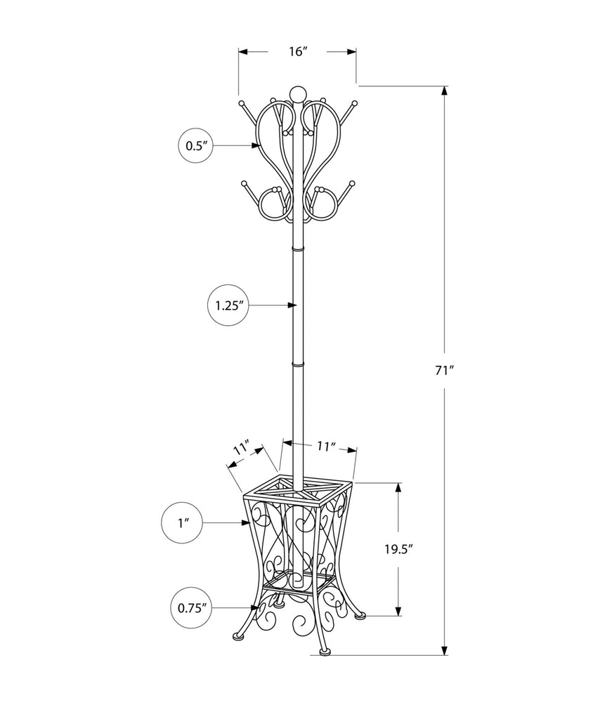 16" X 16" X 71" Black Metal Umbrella Holder Coat Rack