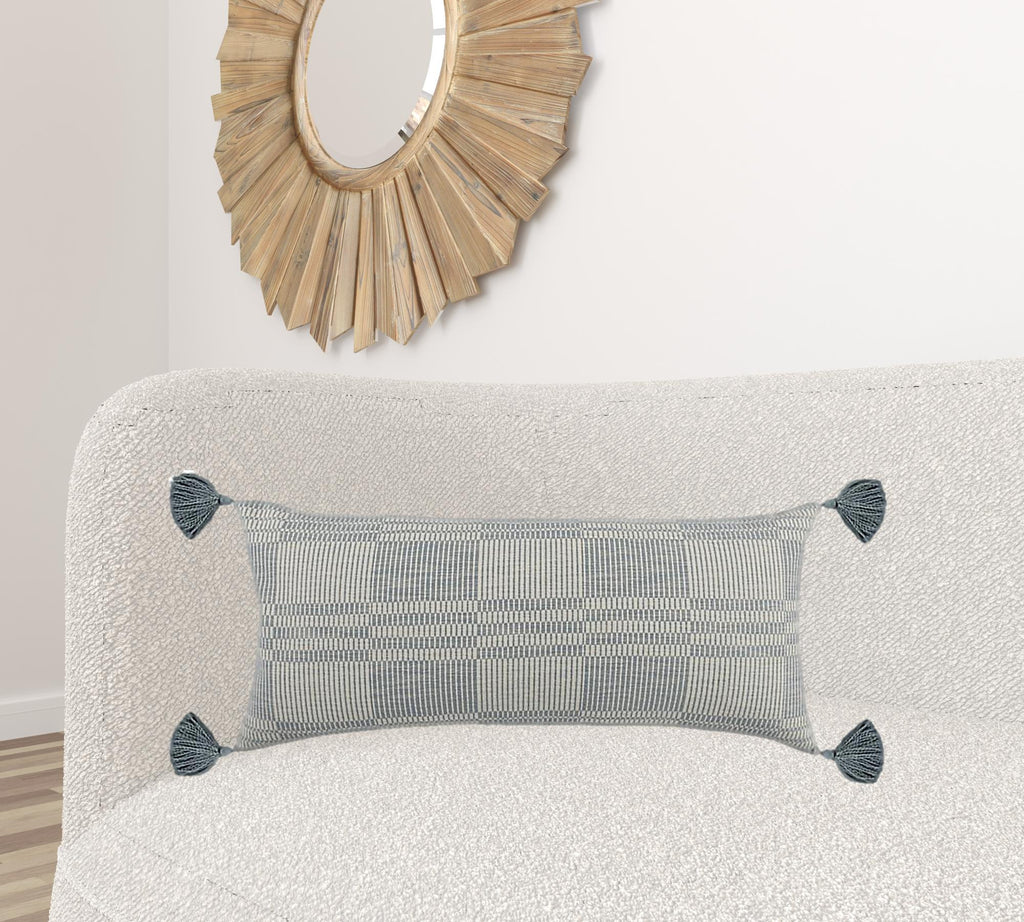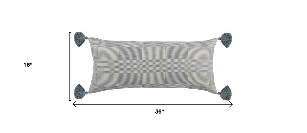 16" X 36" Blue 100% Cotton Plaid Zippered Pillow
