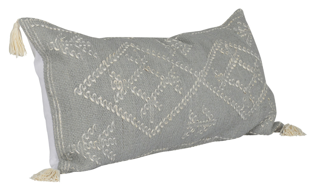 The 16" x 36" gray jute patterned zippered pillow is the perfect decorative accessory for your home. The gray coloring of the extremely durable and long lasting jute will add dimension and texture to your space. Decorative throw pillows not only add color and dimension to your space but can be comfy and supportive when you are lounging and cuddling as well. Decorative pillows are a great way to change up the look and feel of your space easily and quickly. 16" H x 36" W x 5" D