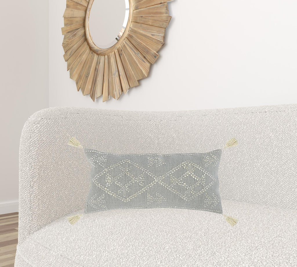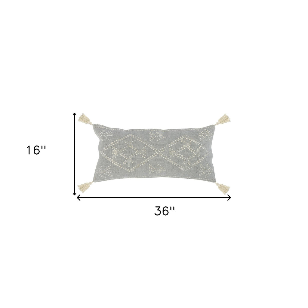 16" X 36" Gray Jute Patterned Zippered Pillow