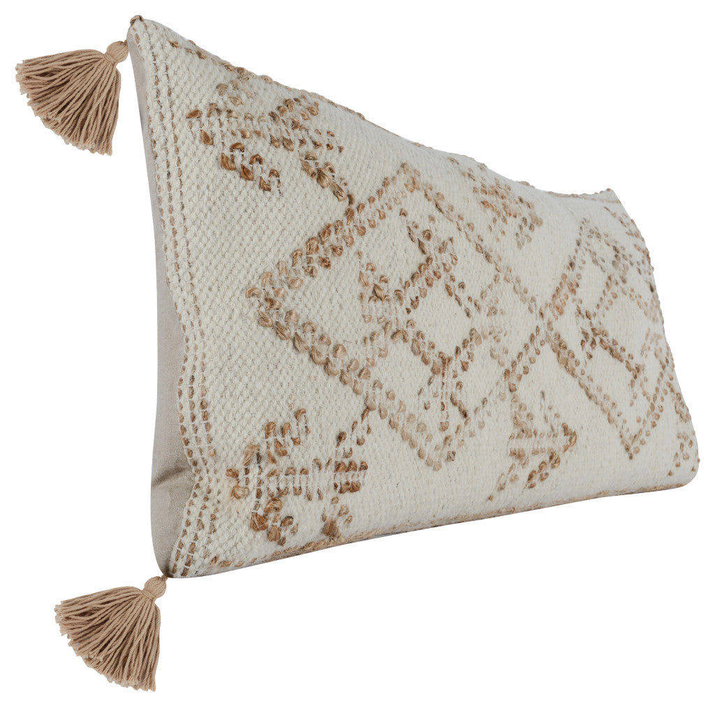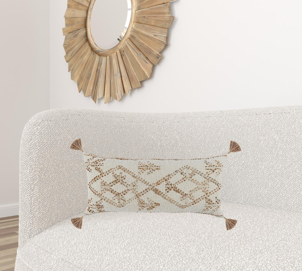 16" X 36" Ivory Jute Patterned Zippered Pillow