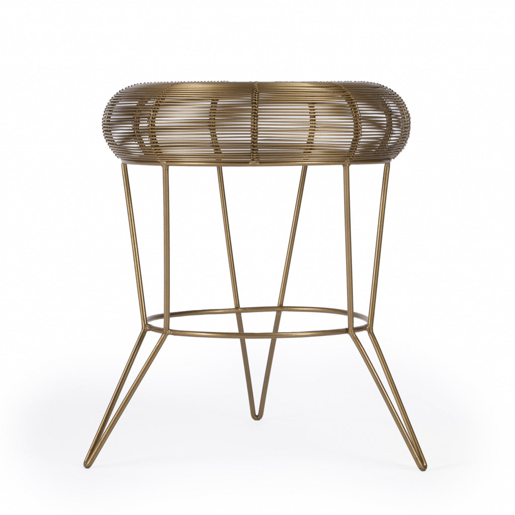 Show off your exquisite taste with this 18" antique gold iron round end table. Made of iron, the antique gold coloration throughout gives this piece an updated and refreshing look. The purposefully distressed finish gives this table an authentically rustic feel. A great accent on either side of the sofa or bed, this adorable end or side table is just what you need. You can match it with other pieces to get the ideal look for your place. 18" H x 15" W x 15" D