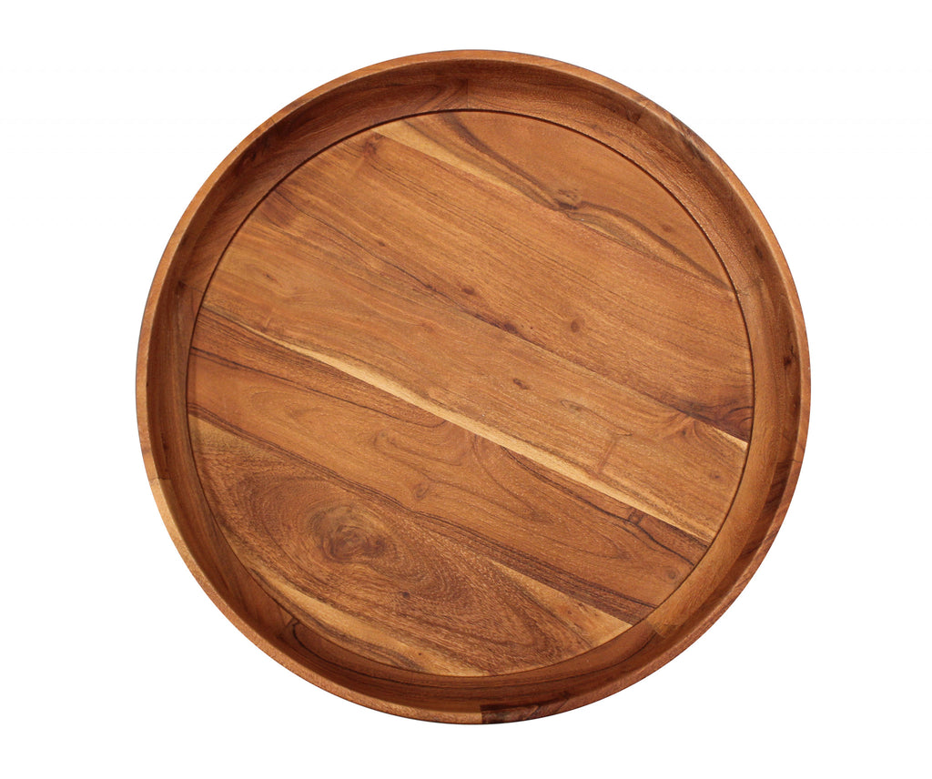 Show off your exquisite taste with this 18" black and natural brown solid wood and iron round end table. The black coloration of the high quality iron base marries nicely with the natural brown solid wood top. The purposefully distressed finish gives this table an authentically rustic feel. Side tables are a great way to flank your sofa, use as an accent next to your favorite chair, or can even be used bedside. You can also use it as an entryway table to hold your keys. 18" H x 21" W x 21" D