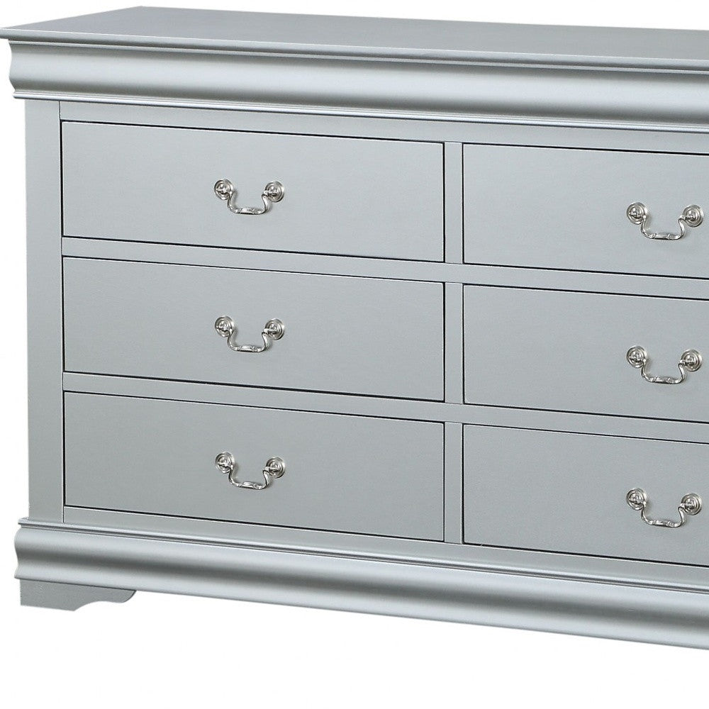 Make your room functional and visually enticing with this masterful 18-inch gray solid wood double dresser. This horizontal double dresser has column style drawers and a wide top surface area to help you with your daily dressing essentials. This dresser is built to last from high quality solid wood, the gray coloration of this piece is neutral and will blend easily with most any decor. 34-inch H x 18-inch W x 60-inch D