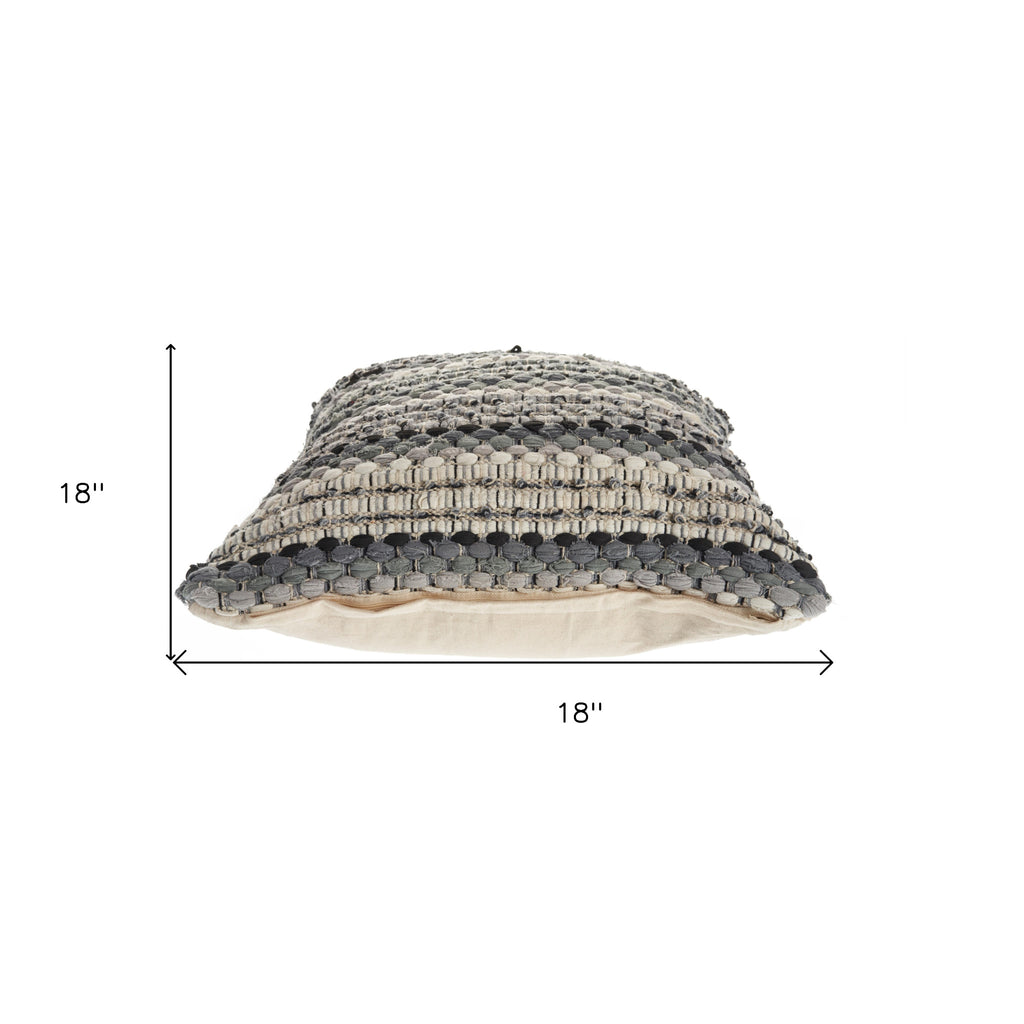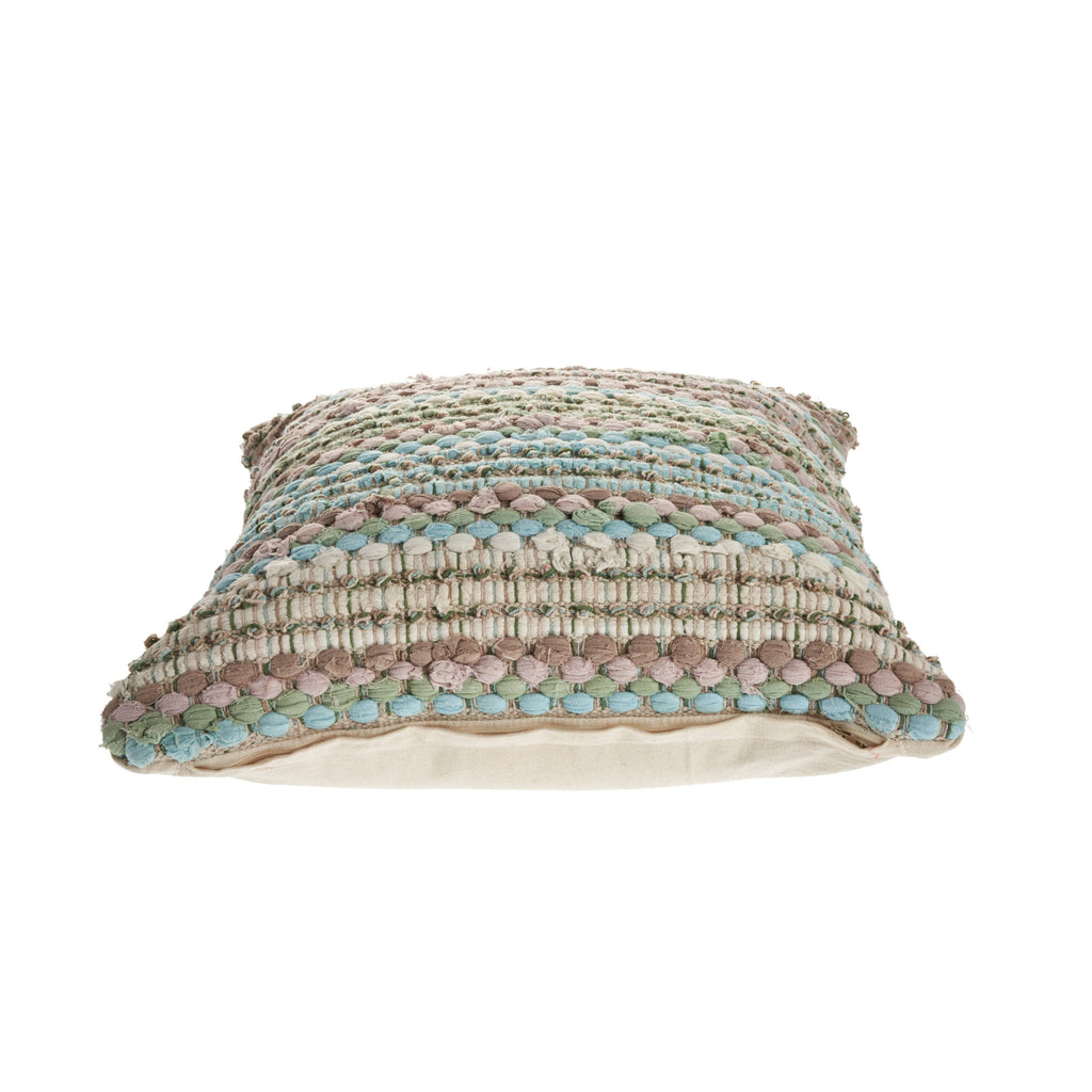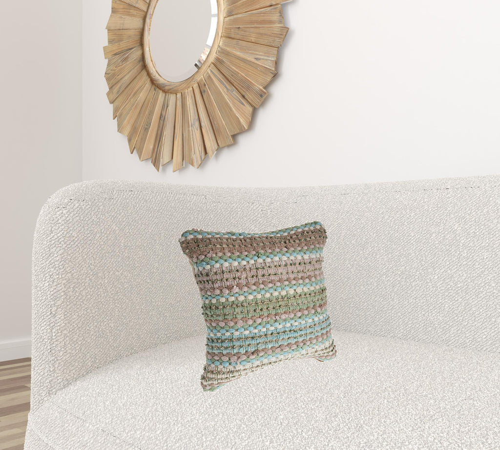 18" X 18" Blue and Green Striped Cotton Zippered Pillow