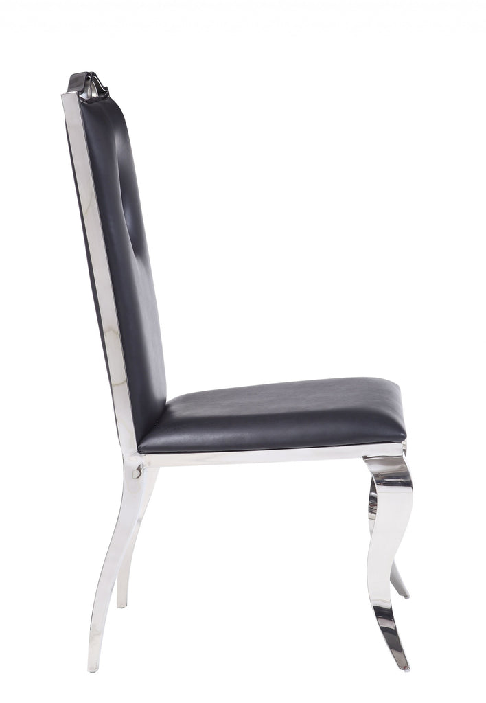 19" X 21" X 44" Faux Leather Stainless Steel Upholstered Seat Side Chair Set2