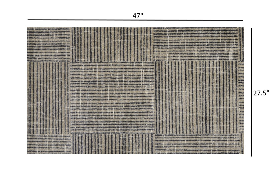 2' x 4' Modern Geo Lines in Squares Washable Floor Mat