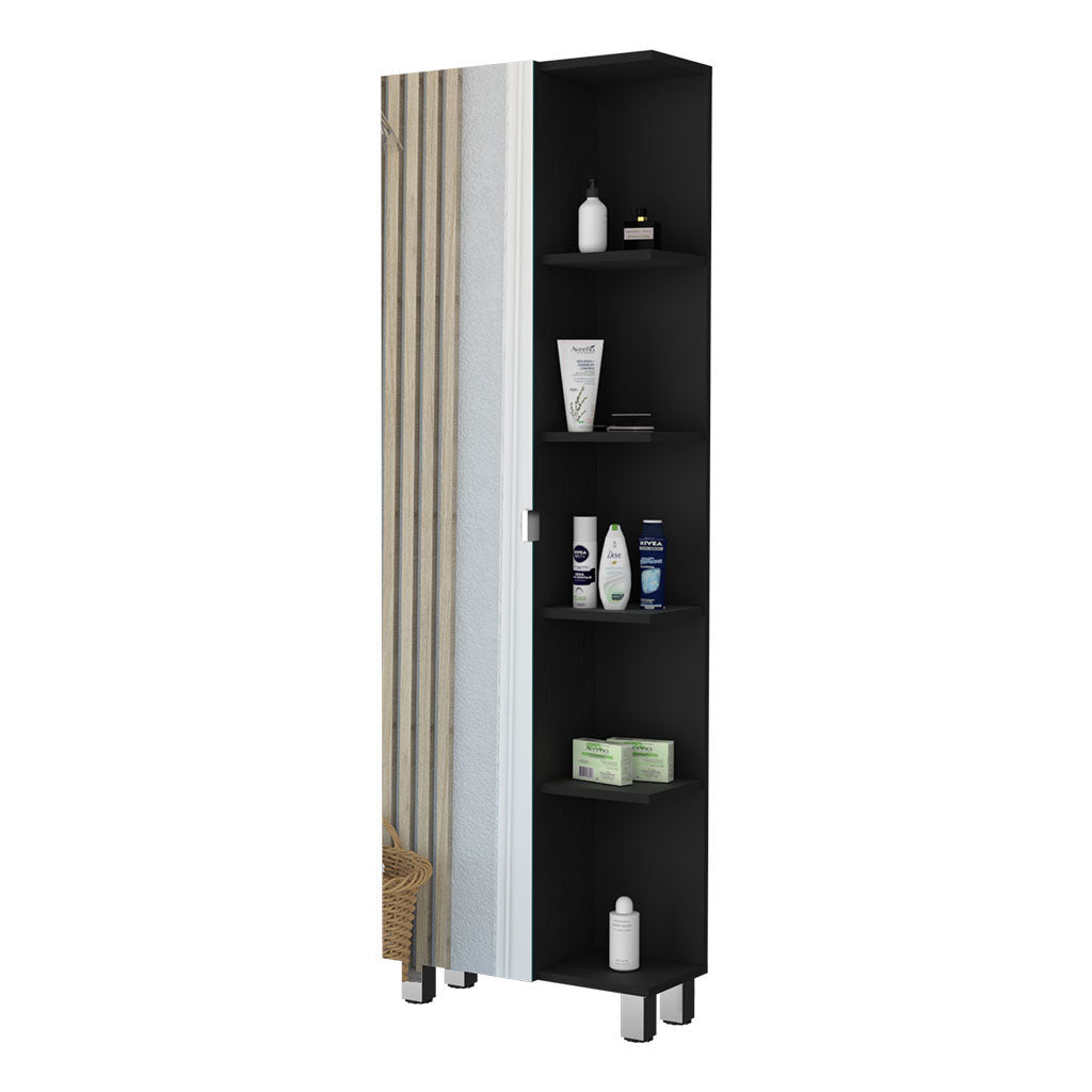 Add a fashionable storage option to your space with this 20-inch black accent cabinet with nine shelves. This cabinet features a glamorous and reflective mirrored finish. Its a high quality piece, made from premium grade manufactured wood. Storage vessels don't have to be unsightly. Increase your storage space and the fashion quotient of your room with this hard wearing, versatile, and good looking cabinet. 62.2-inch H x 20.15-inch W x 8.58-inch D