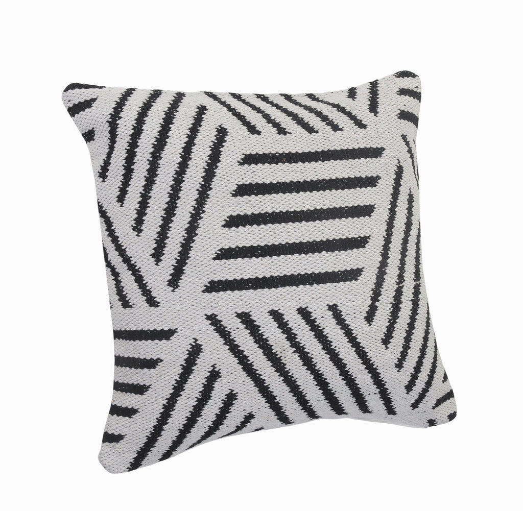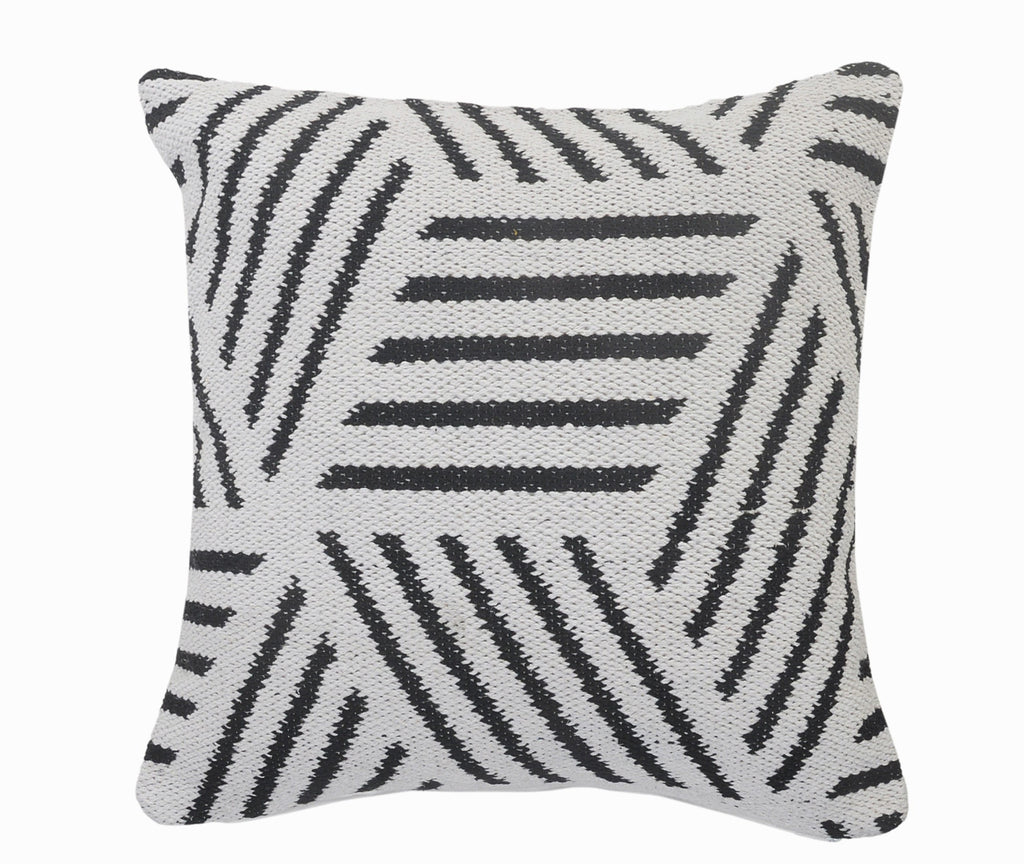 Unique and decorative, this comfortable 20" x 20" black and white 100% cotton geometric zippered pillow will leave a lasting impression. This black and white hued piece represents quality construction, expertly made from premium 100% cotton that is not only long lasting but super soft to the touch as well. For anyone that loves to decorate or accent their space with color and texture. Decorative pillows are a great way to change up the look and feel of your space easily and quickly. 4" H x 20" W x 20" D