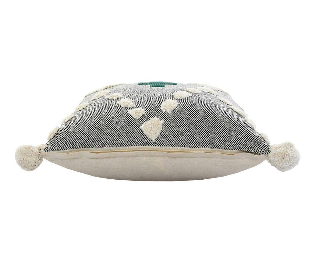 The perfect complement to your sofa, favorite chair, or bed, this 20" x 20" black off-white and green 100% cotton geometric zippered pillow is a great decorative accent. This black off-white and green hued piece represents quality construction, expertly made from premium 100% cotton that is not only long lasting but super soft to the touch as well. For anyone that loves to decorate or accent their space with color and texture. Decorative pillows are a great way to change up the look and feel of your space easily and quickly. 4" H x 20" W x 20" D