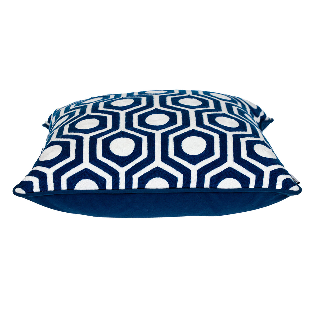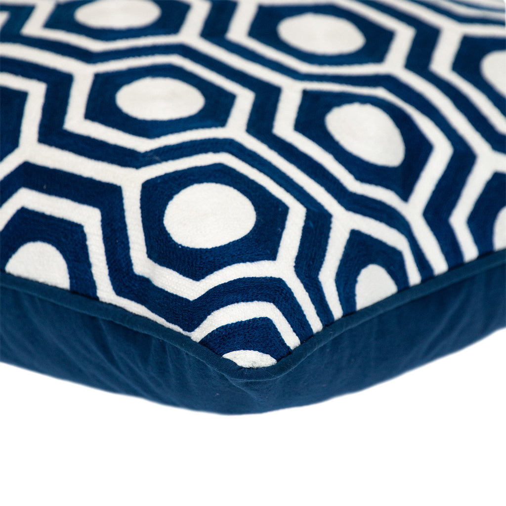 The 20-inch x 20-inch blue geometric cotton zippered pillow is the perfect decorative accessory for your home. Soft and textural blue 100% cotton has been used to make this pillow look and feel like a real treasure. Super soft and built to hold its shape, this polyfill pillow is a great option. Decorative throw pillows not only add color and dimension to your space but can be comfy and supportive when you are lounging and cuddling as well. A great decorative accessory for your favorite chair, to accent your sofa, or to use as part of your bed ensemble. 20-inch H x 20-inch W x 0.5-inch D