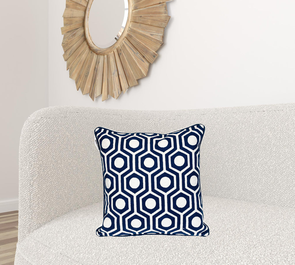 20" X 20" Blue Geometric Cotton Zippered Pillow
