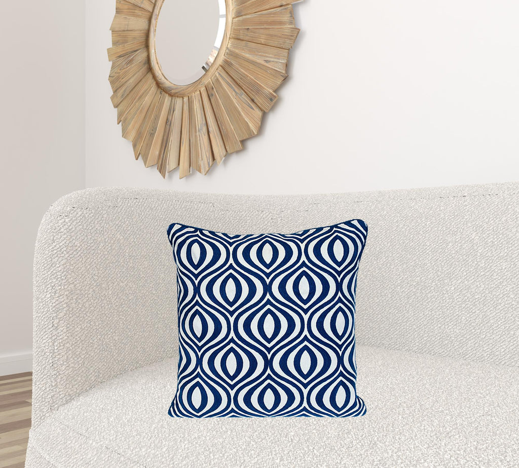 20" X 20" Blue Geometric Cotton Zippered Pillow