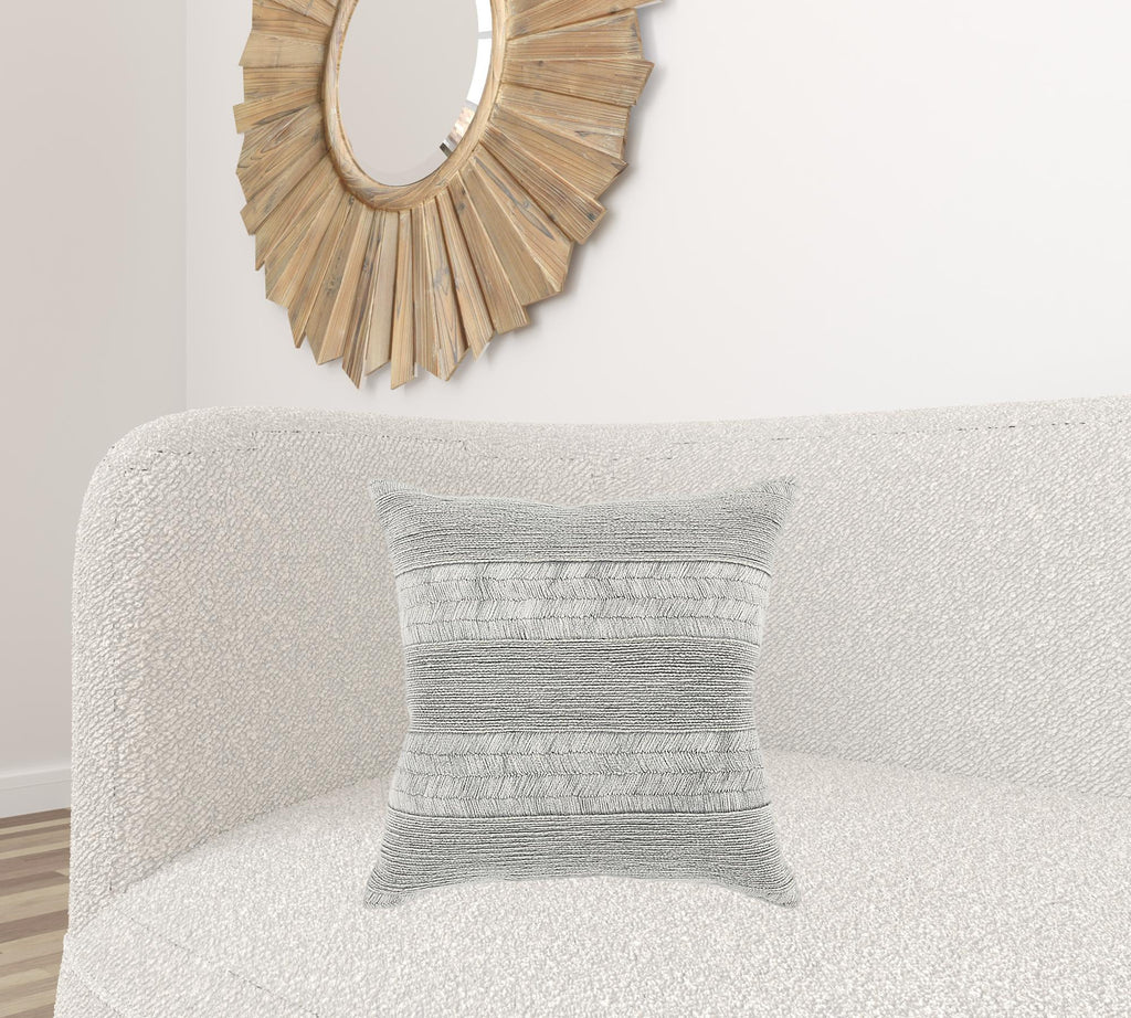 Unique and decorative, this comfortable 20" x 20" gray 100% cotton zippered pillow will leave a lasting impression. Soft and textural gray 100% cotton has been used to make this pillow look and feel like a real treasure. For anyone that loves to decorate or accent their space with color and texture. Decorative pillows are a great way to change up the look and feel of your space easily and quickly. 20" H x 20" W x 5" D
