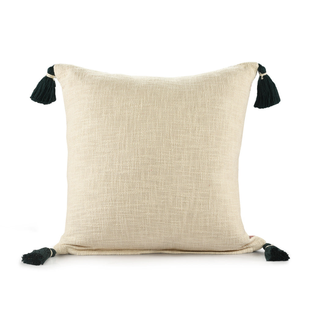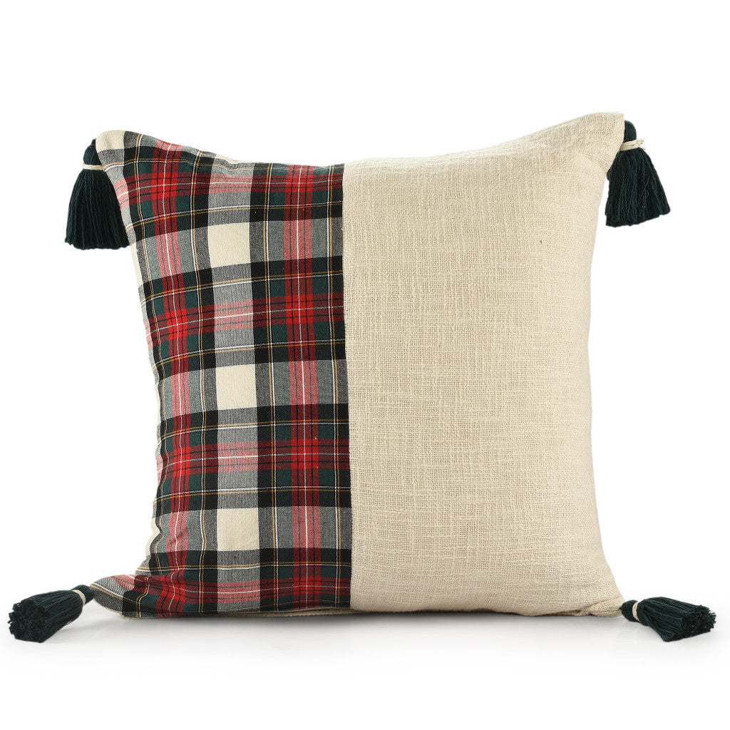 This 20-inch x 20-inch ivory and red christmas plaid cotton zippered pillow with tassels is the perfect way to celebrate and decorate your living room, family room, bedroom, or office for christmas. This super soft decorative pillow is expertly made of high grade, long lasting 100% cotton in a ivory and red coloration. Fun and decorative tassels add some high end and hand-crafted textural designer touches. Super soft and built to hold its shape, this polyfill pillow is a great option. For anyone that loves to decorate or accent their space with color and texture. Decorative pillows are a great way to change up the look and feel of your space easily and quickly. 20-inch H x 20-inch W x 4-inch D