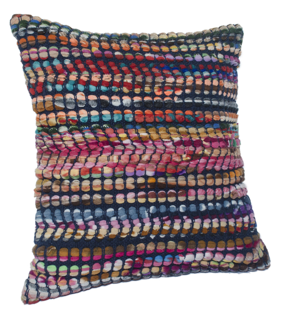 This 20" x 20" red green blue yellow orange pink and black 100% cotton geometric zippered pillow will add a beautiful decorative accent to your decor. The red green blue yellow orange pink and black coloring of the soft and long lasting 100% cotton will add dimension and texture to your space. Great to use on its own or mix with other decorations for the perfect look. A great decorative accessory for your favorite chair, to accent your sofa, or to use as part of your bed ensemble. 4" H x 20" W x 20" D