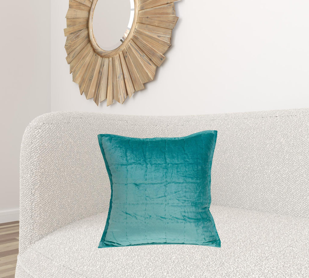 20" X 7" X 20" Transitional Aqua Solid Quilted Pillow Cover With Poly Insert
