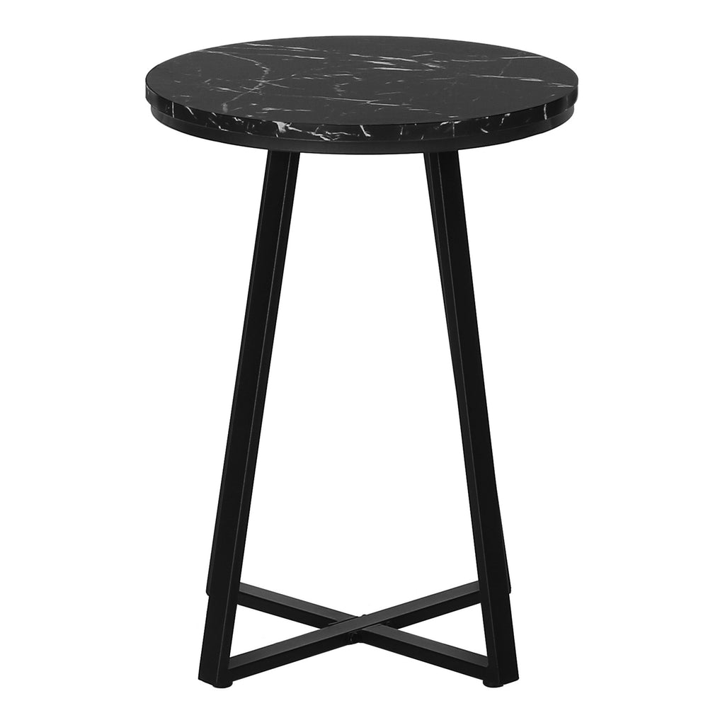 Distinctive in style the 22" black faux marble round end table with radiates a versatile charm. The black coloration runs throughout this good looking metal and faux marble table. An ideal location for placing your snacks and drinks, and a place to keep your lamp, frames, or other accessories. You can match it with other pieces to get the ideal look for your place. 21.75" H x 15.75" W x 15.75" D