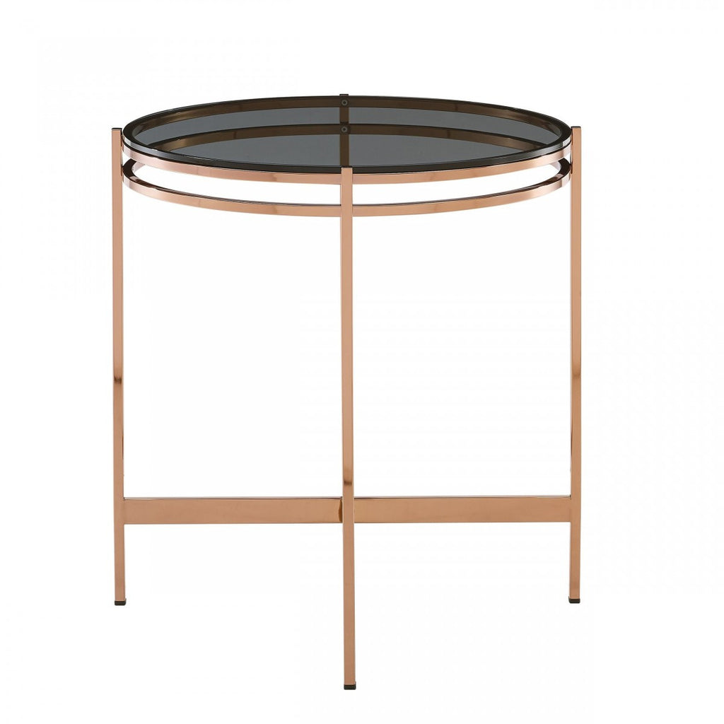 22" Rosegold And Smoke Glass Geo Round End Table