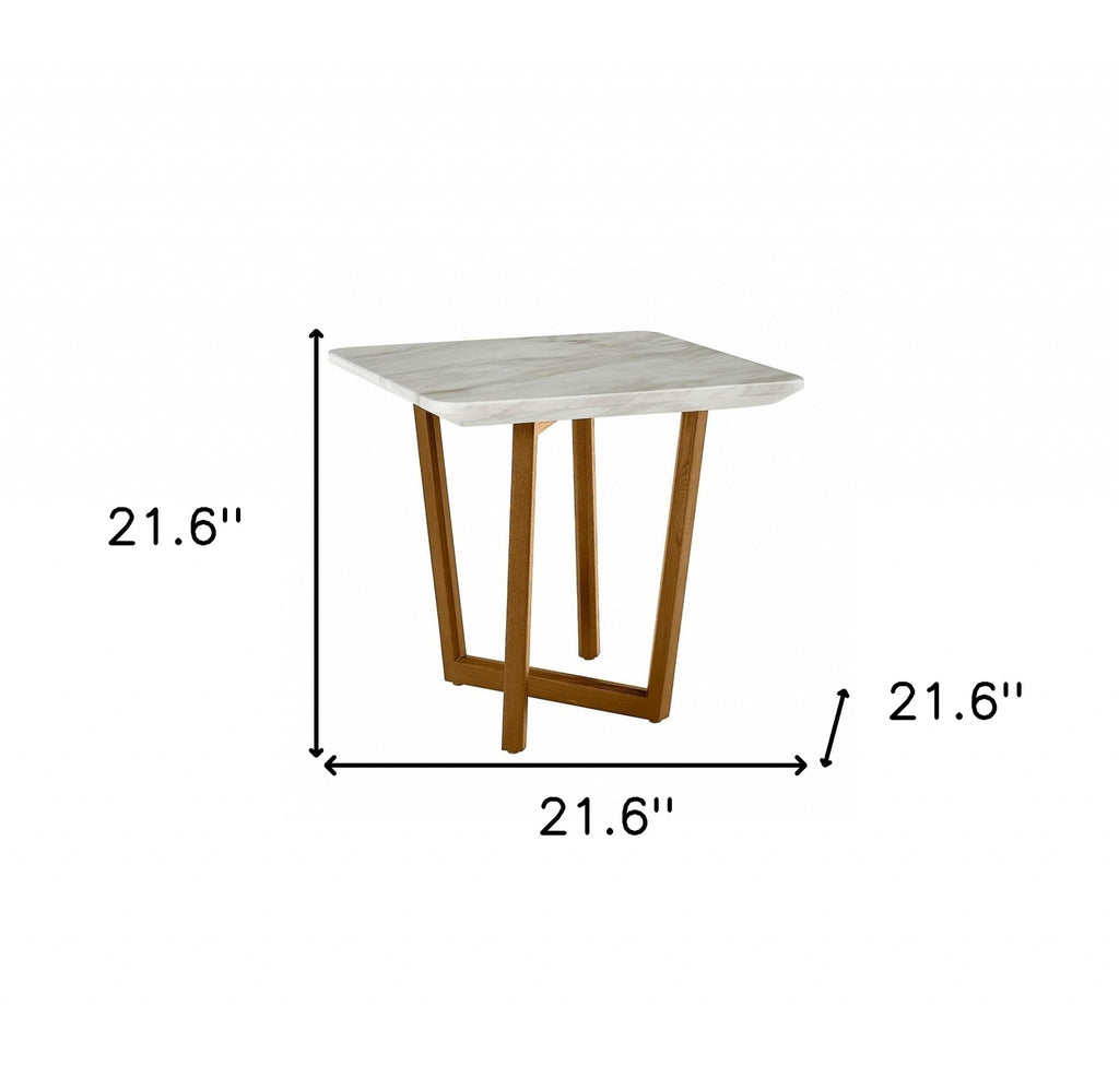 Show off your exquisite taste with this 22" walnut and white faux marble square end table. A walnut finish wood frame is finished off with a white marble genuine marble look top that is the epitome of quality construction and design. An ideal location for placing your snacks and drinks, and a place to keep your lamp, frames, or other accessories. This versatile table is a great accent for most any room. 21.6" H x 21.6" W x 21.6" D