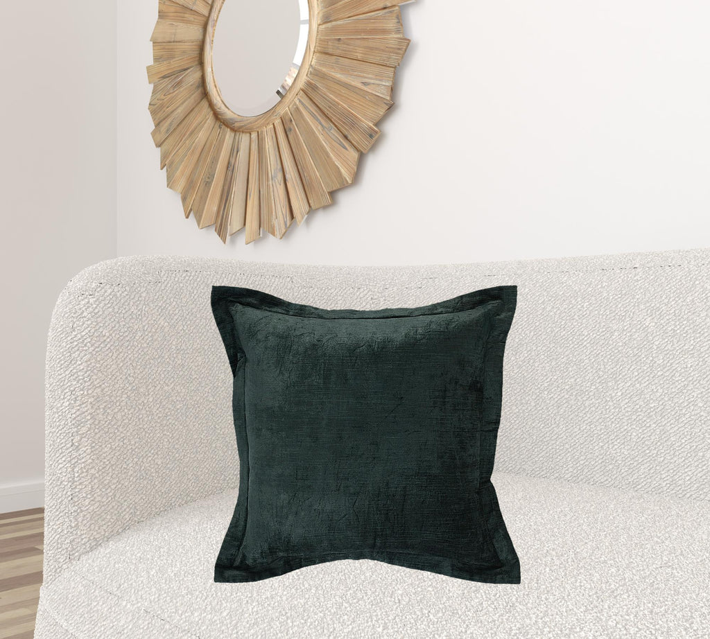 This 22" x 22" green velvet zippered pillow will add a beautiful decorative accent to your decor. The green coloring of the soft and long lasting velvet will add dimension and texture to your space. Decorative throw pillows not only add color and dimension to your space but can be comfy and supportive when you are lounging and cuddling as well. A great decorative accessory for your favorite chair, to accent your sofa, or to use as part of your bed ensemble. 22" H x 22" W x 5" D