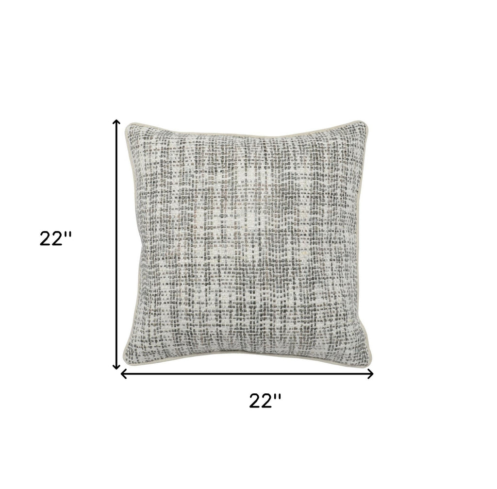 22" X 22" Taupe Linen Blend, Viscose, Linen Plaid Zippered Pillow