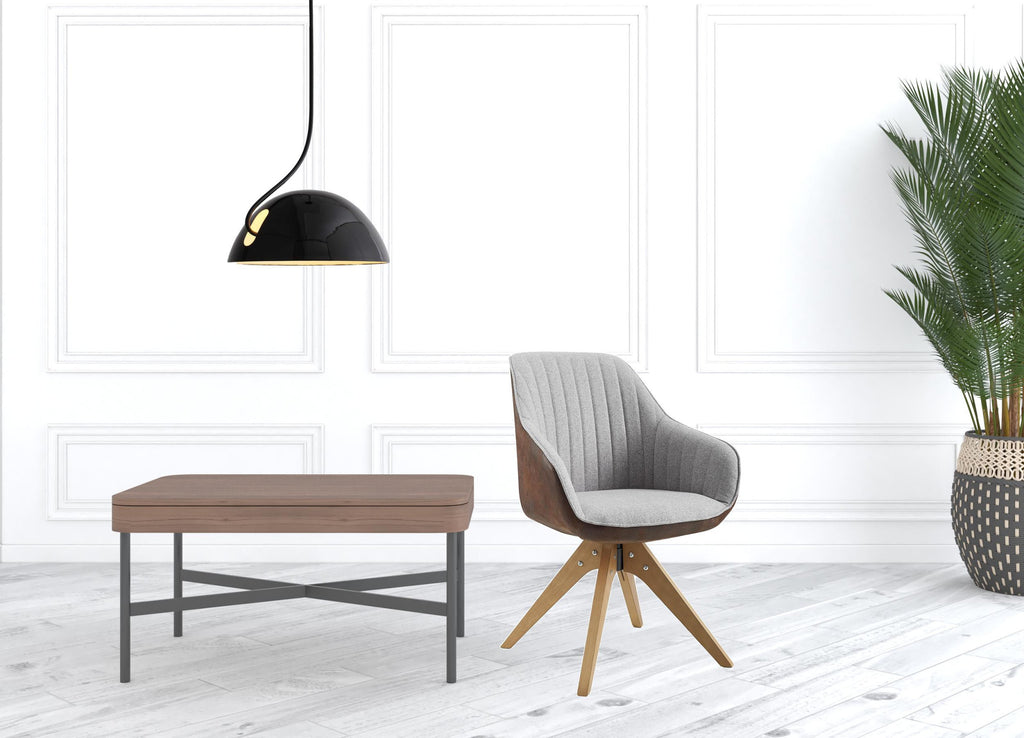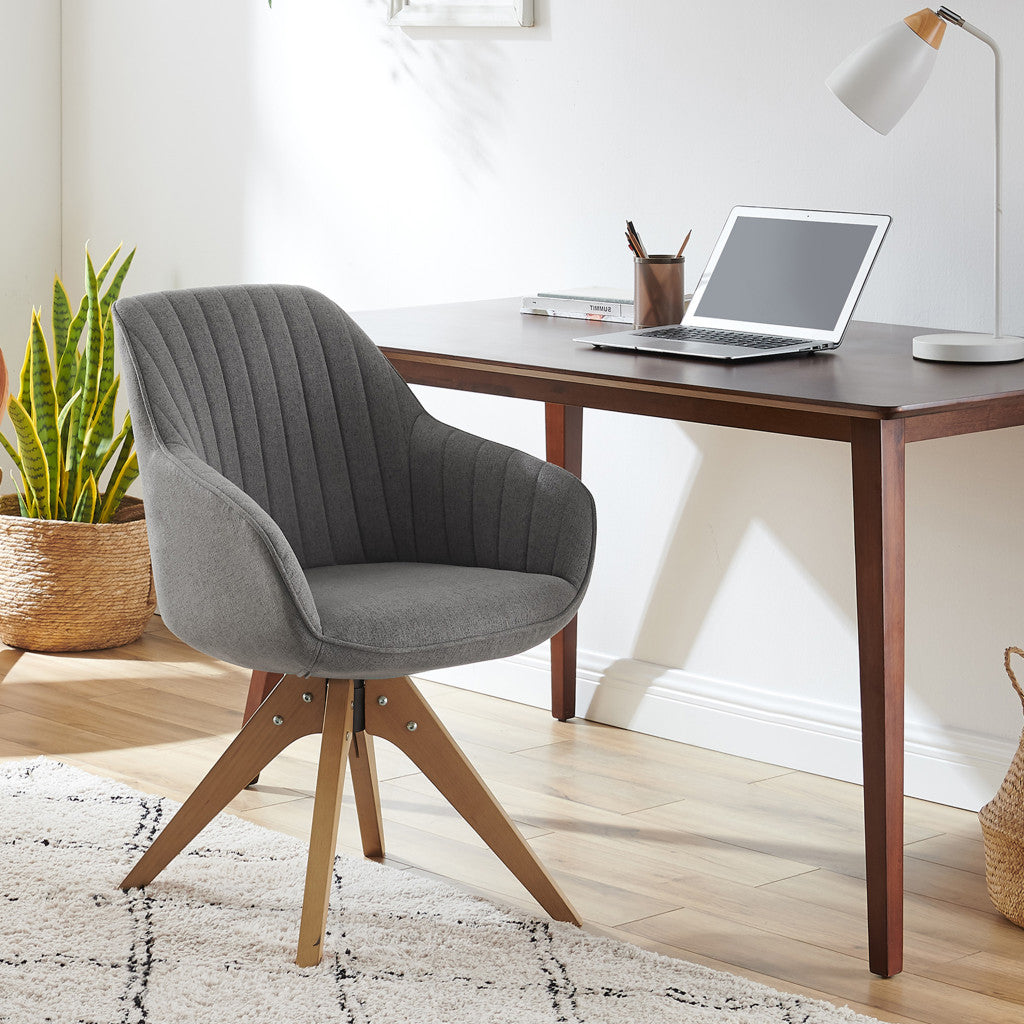 This 23" gray fabric and natural swivel arm chair will add a beautiful decorative accent to your decor. This sturdy fabric upholstered arm chair comes in a chic solid gray color to give your space just the right look. This chair features a swivel function so that you can turn and angle easily to interact with your space. 32.87" H x 23.03" W x 23.23" D