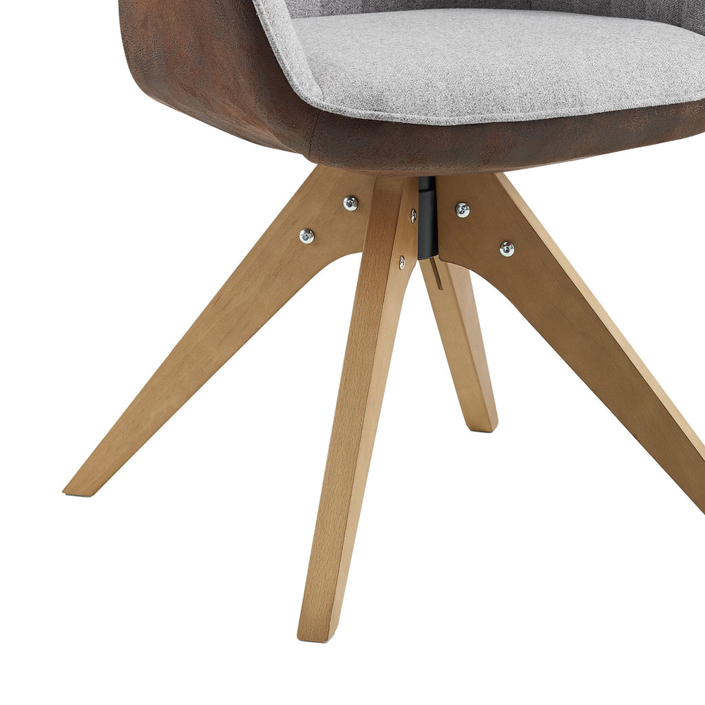 23" Gray Fabric And Natural Swivel Arm Chair