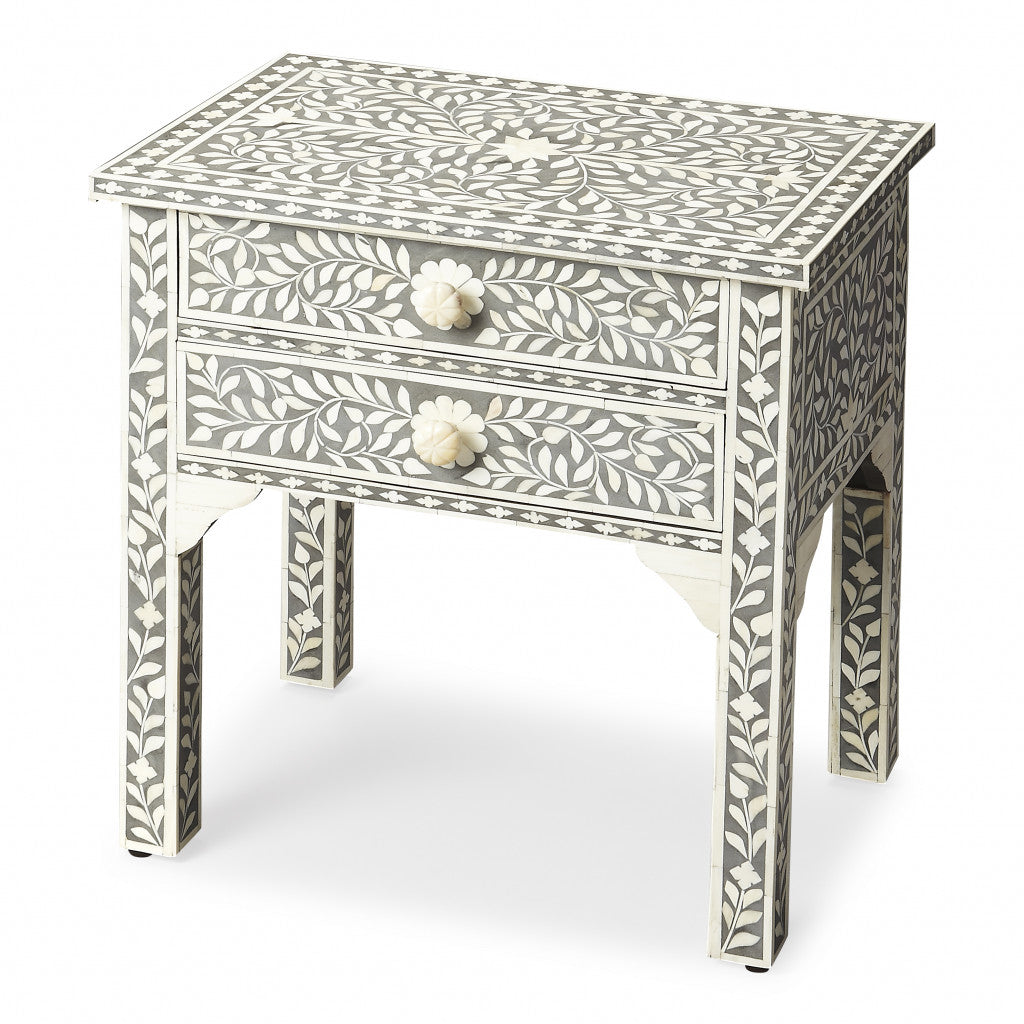 23" Gray Manufactured Wood Rectangular End Table With Two Drawers