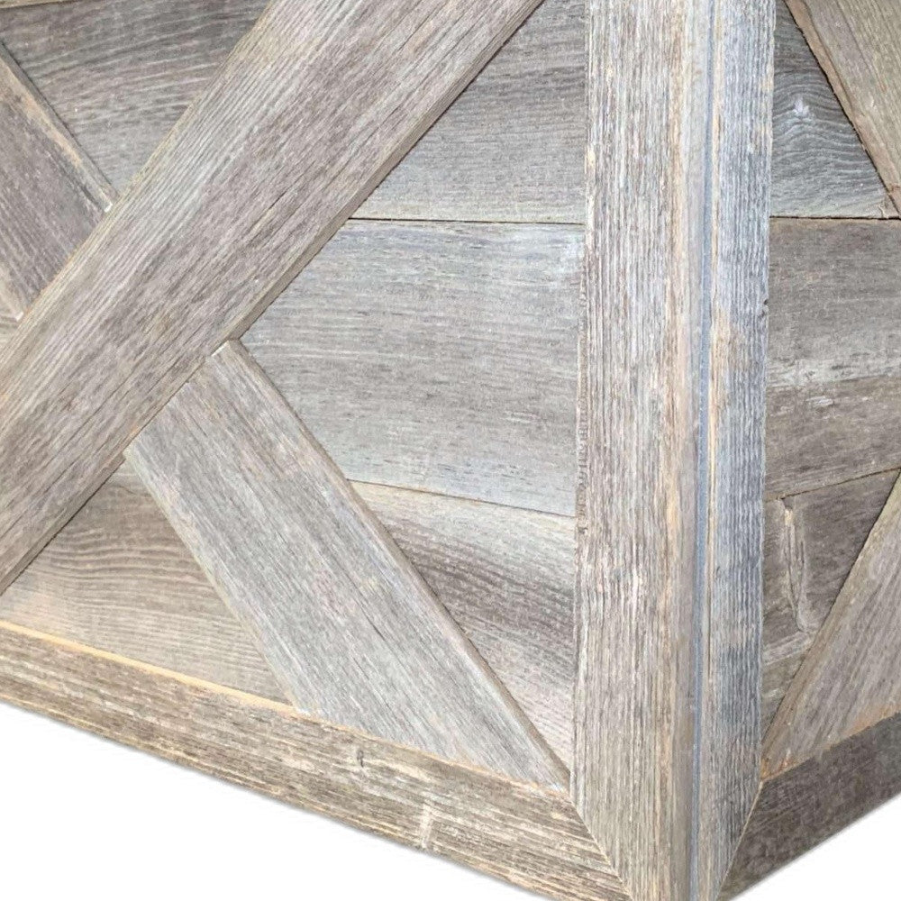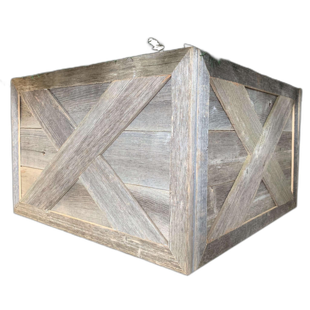 Change up the look of your room with this gorgeous Natural Weathered Gray Christmas Tree Collar Box. This modern farmhouse inspired collar goes around your Christmas Tree Stand to give your tree and the room an updated and designer feel. The X design on each side adds a rustic and charming touch. Replace the traditional tree skirt with this vintage looking box made of genuine recycled and reclaimed wood. 14.5" x 23" x 3.