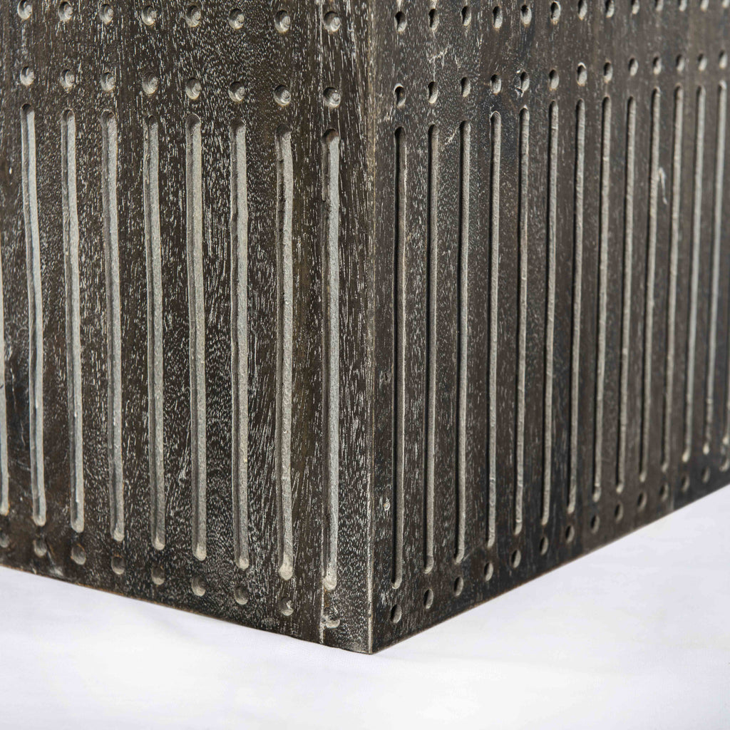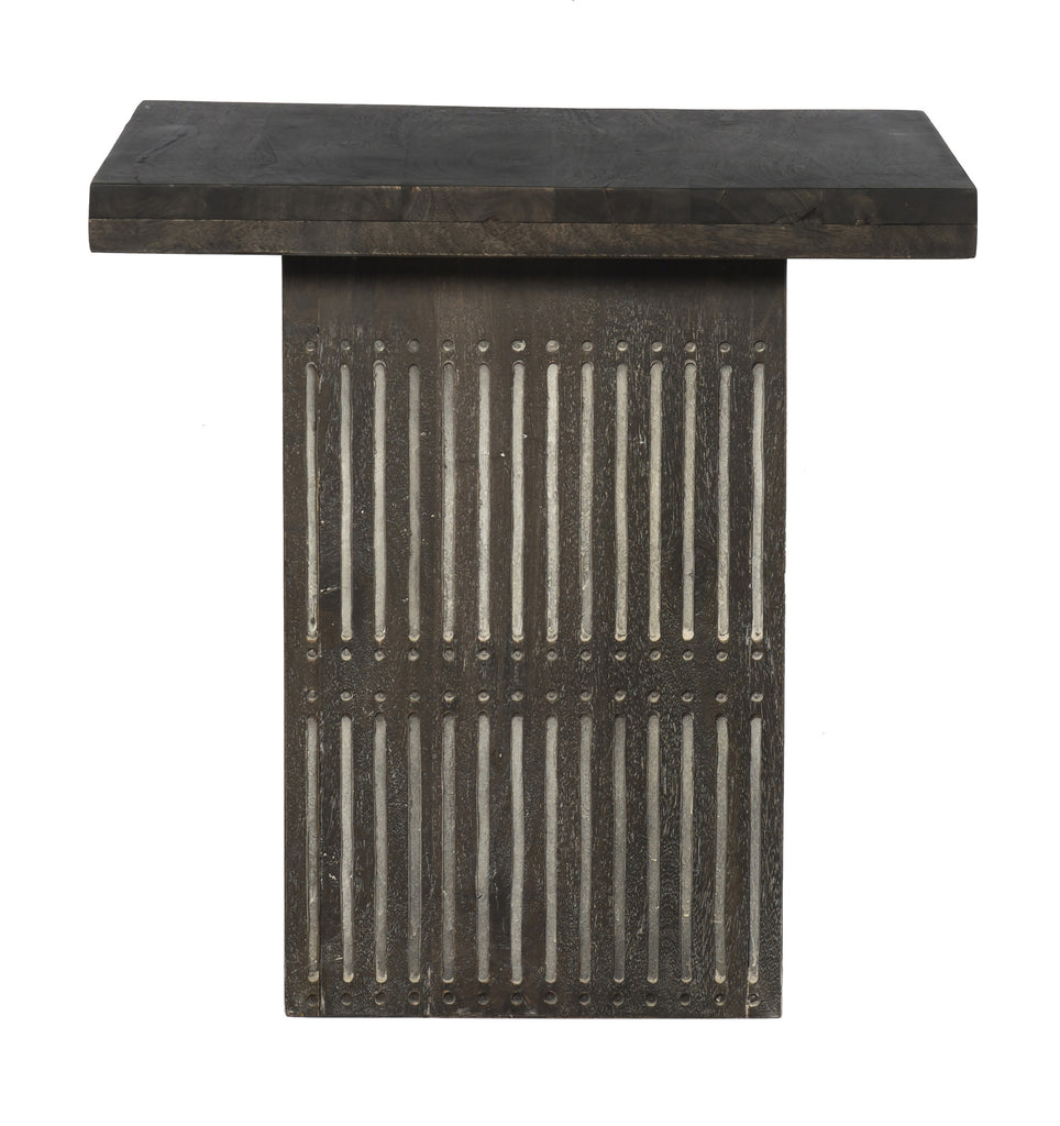Distinctive in style the 24" antique brown solid wood square end table radiates a versatile charm. This table is made from solid wood in a antique brown color throughout the base and top. Complete with a purposefully distressed finish, this table has an aged, vintage, and rustic feel. An ideal location for placing your snacks and drinks, and a place to keep your lamp, frames, or other accessories. This versatile table is a great accent for most any room. 24" H x 24" W x 24" D