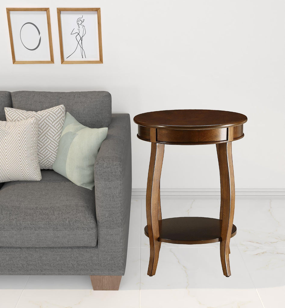 24" Brown Solid Wood Round End Table