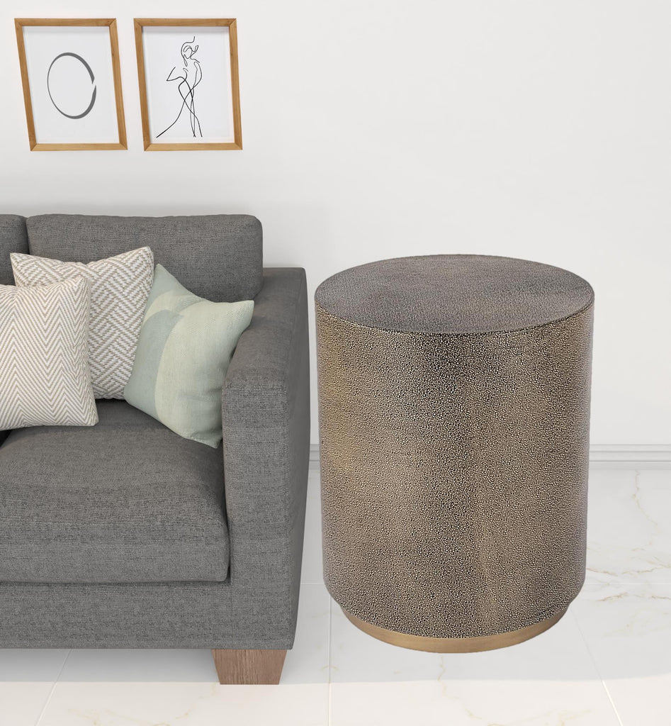 Optimize your space and add some charm to your room with the 24" gold manufactured wood rectangular end table. A sleek gold monotone color gives this steel and manufactured wood table a fresh and updated look. Complete with a purposefully distressed finish, this table has an aged, vintage, and rustic feel. Side tables are a great way to flank your sofa, use as an accent next to your favorite chair, or can even be used bedside. You can match it with other pieces to get the ideal look for your place. 24.25" H x 20" W x 20" D