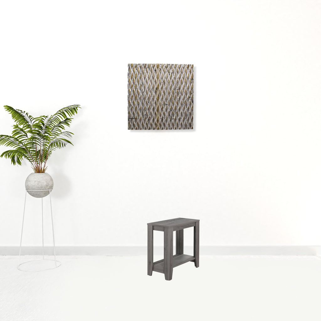 This 24-inch gray console table with storage can provide a variety of practical functions such as providing extra storage space, serving as a display area for decorative items or acting as a catch-all for keys, mail, and other small items. This rectangular table has clean lines and plenty of surface area. This table has a top made with gray manufactured wood that is known for durability and easy maintenance. In addition to a great top, our console table has a high quality manufactured wood four leg base that is durable and easy to clean and maintain. Ideal for living rooms, bedrooms, home offices, and lounge areas, this console table is not only good looking but multi-functional and practical addition to your space. 22-inch H x 23.75-inch W x 11.75-inch D