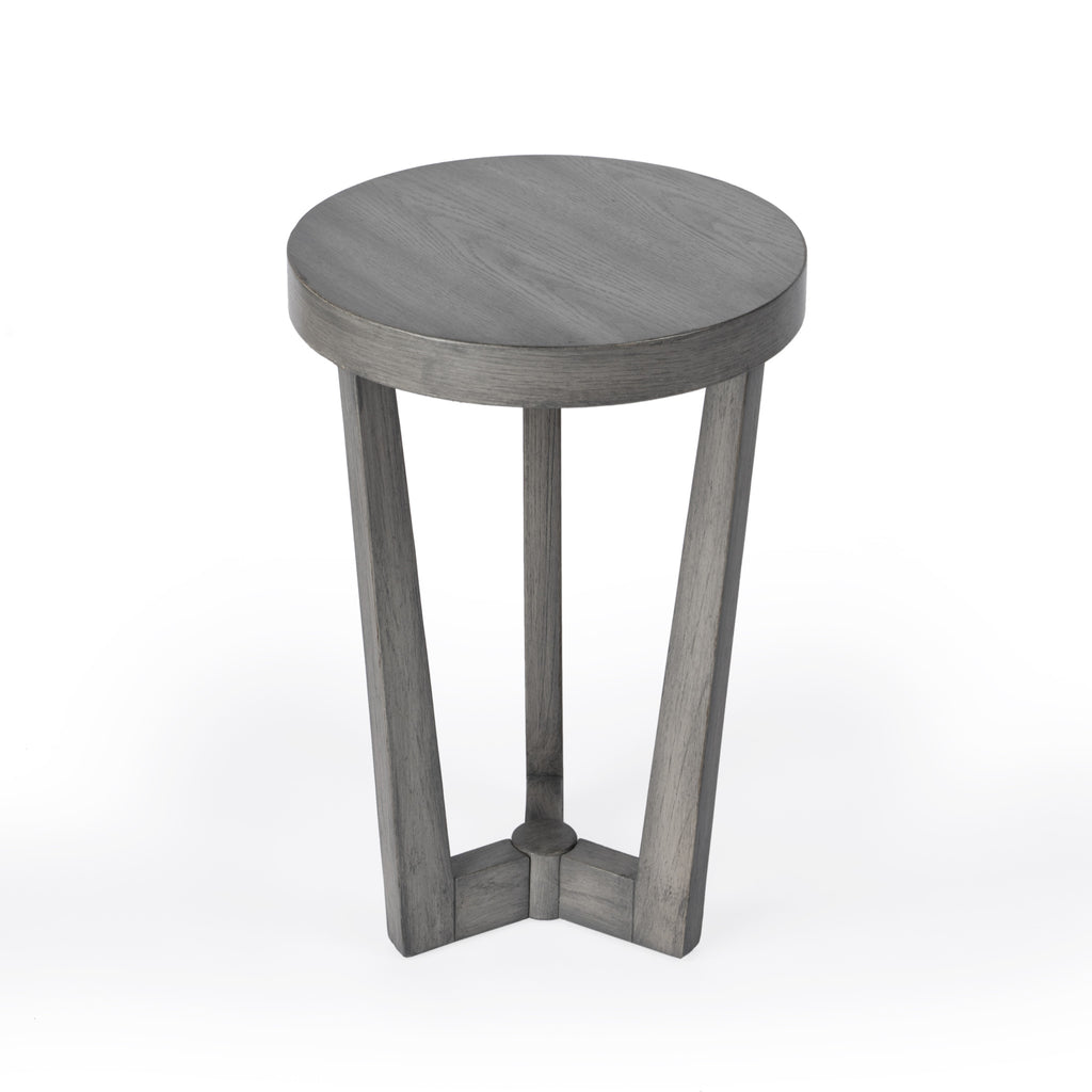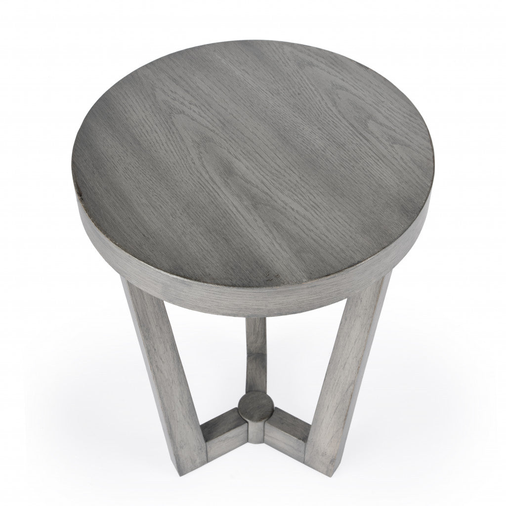 Show off your exquisite taste with this 24" gray manufactured wood round end table. A solid gray solid wood frame is finished off with a matching gray manufactured wood seat, giving this table a chic monotone look. The purposefully distressed finish gives this table an authentically rustic feel. Side tables are a great way to flank your sofa, use as an accent next to your favorite chair, or can even be used bedside. You can match it with other pieces to get the ideal look for your place. 24" H x 16" W x 16" D