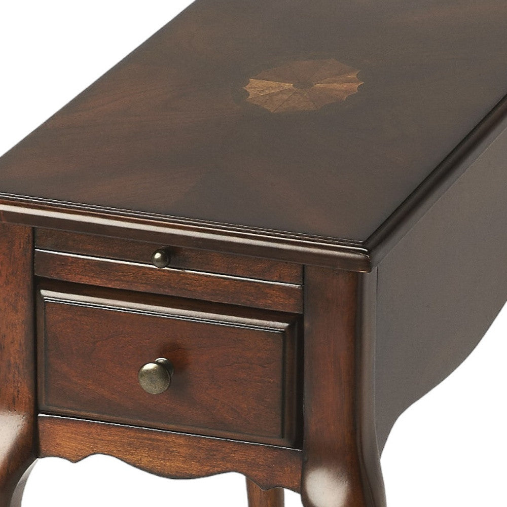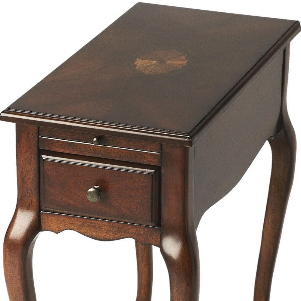 25" Cherry Brown Solid And Manufactured Wood Rectangular End Table With Drawer